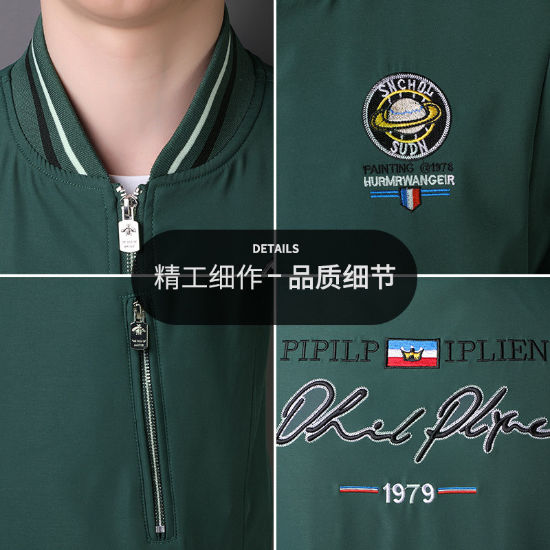 皮尔卡丹棒球领刺绣时尚韩版夹克