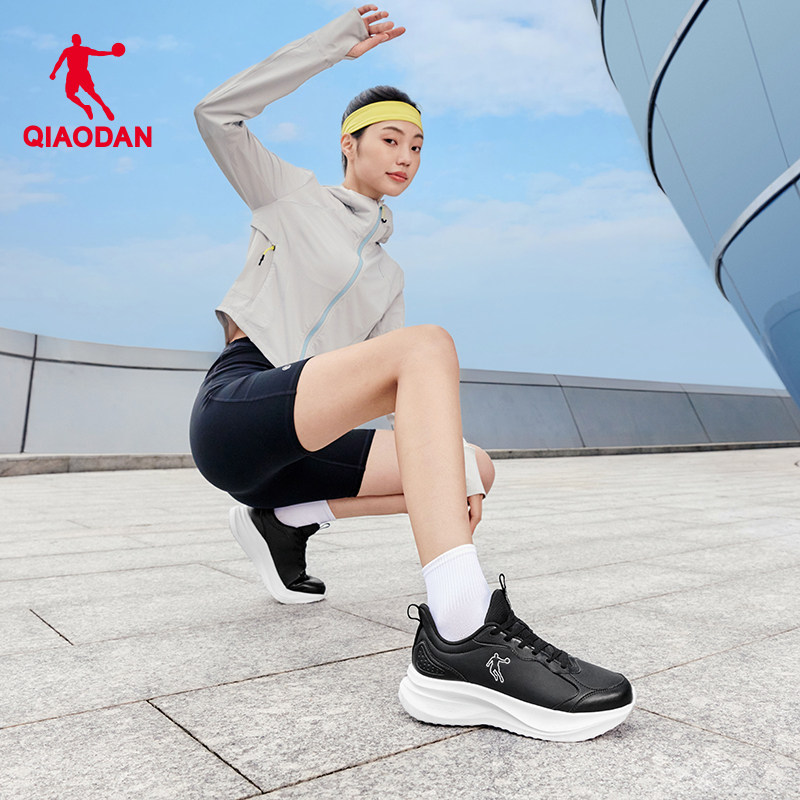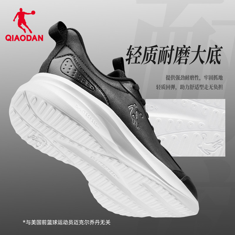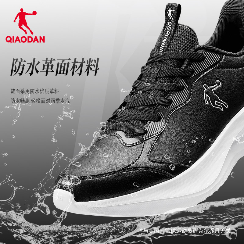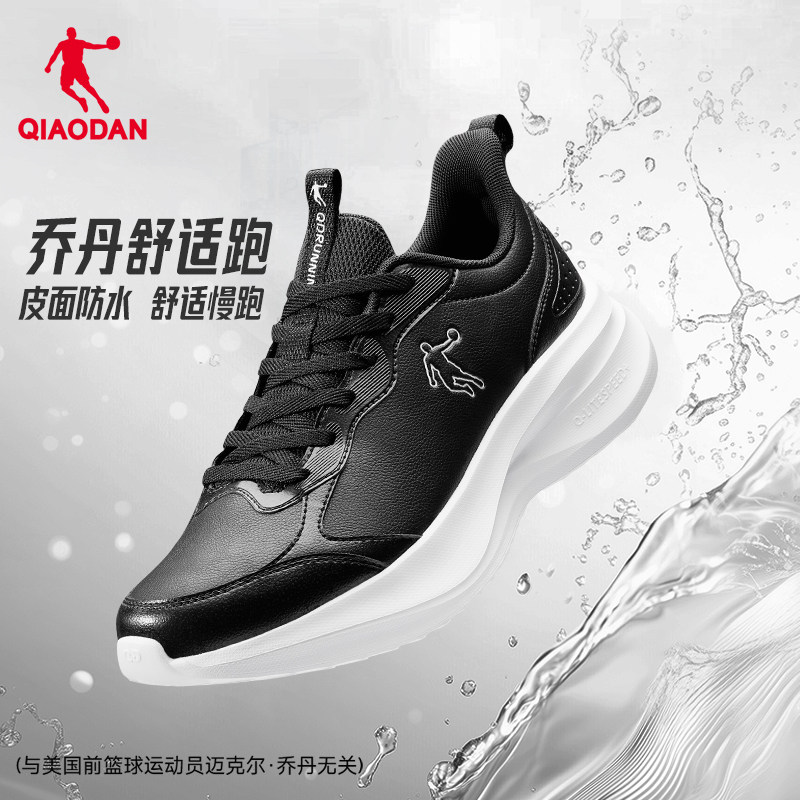 乔丹黑色运动鞋女款皮面防水2025冬季新款轻便中年妈妈舒适跑步鞋