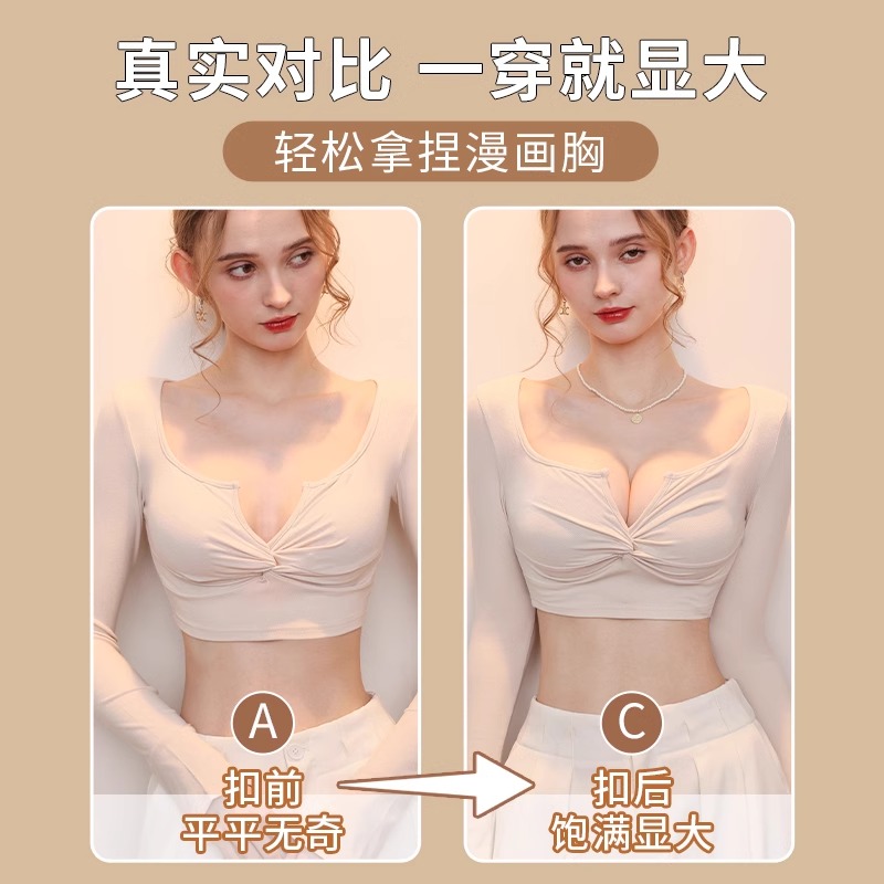 前扣6cm加厚杯内衣女小胸聚拢显大平胸专不空杯细肩带外扩文胸