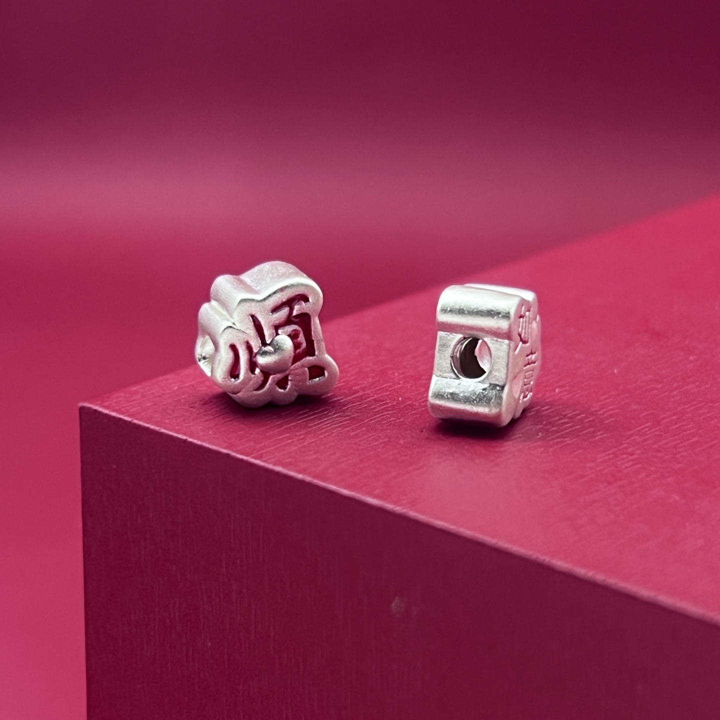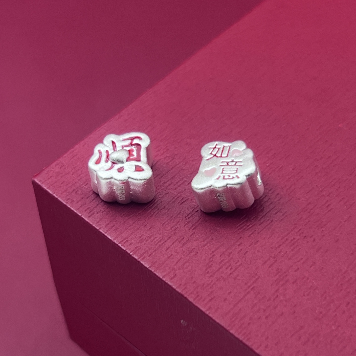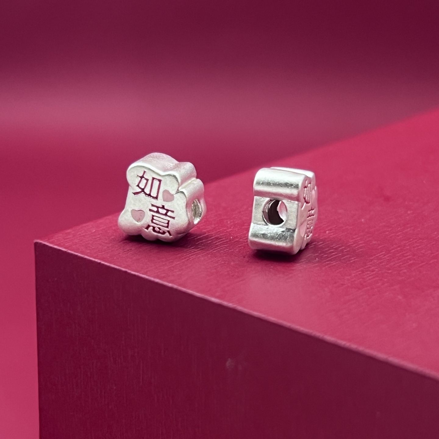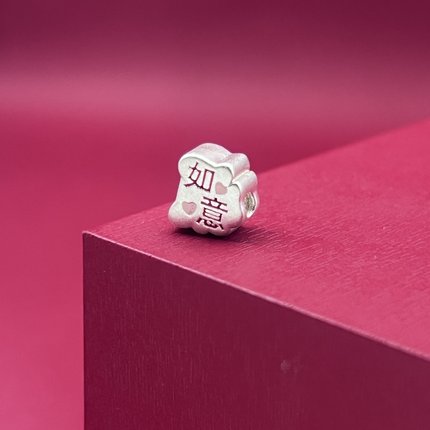 足银999顺心如意珐琅彩胶烤蓝纯银3D工艺散珠隔珠DIY银饰配件编绳