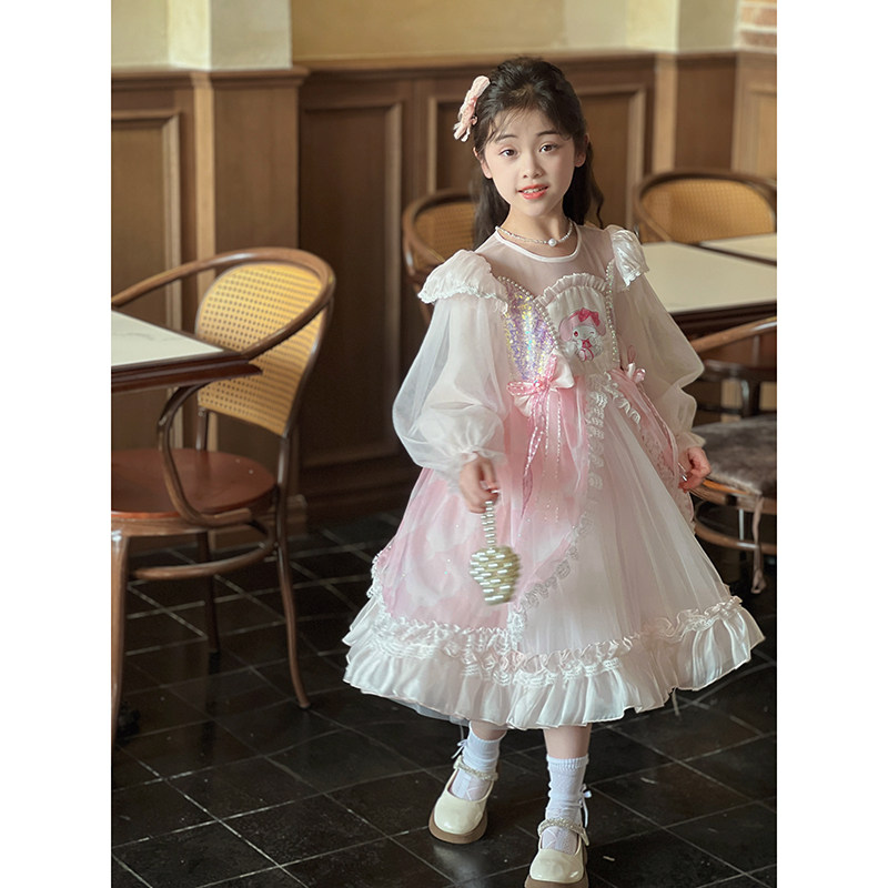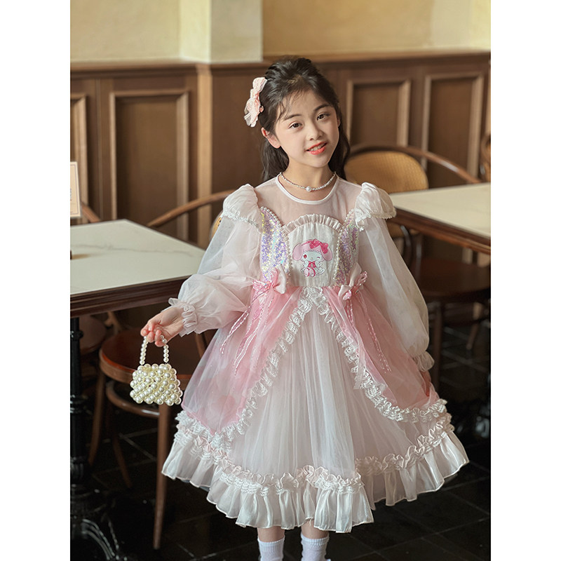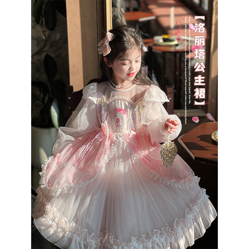 女童连衣裙2024春季新款儿童裙子洛丽塔公主裙蓬蓬礼服裙卡通长裙