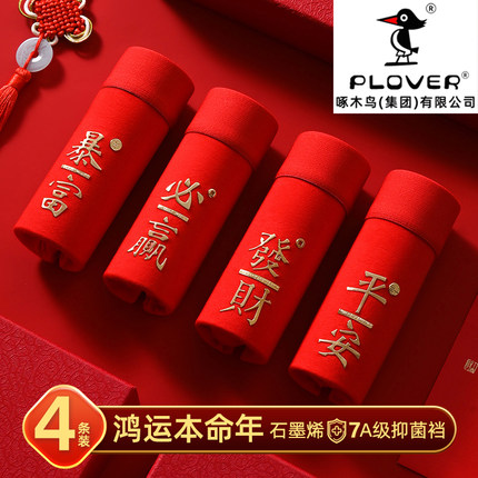 红色本命年男士内裤纯棉平角裤男生马年裤头礼物属马四角短裤男款