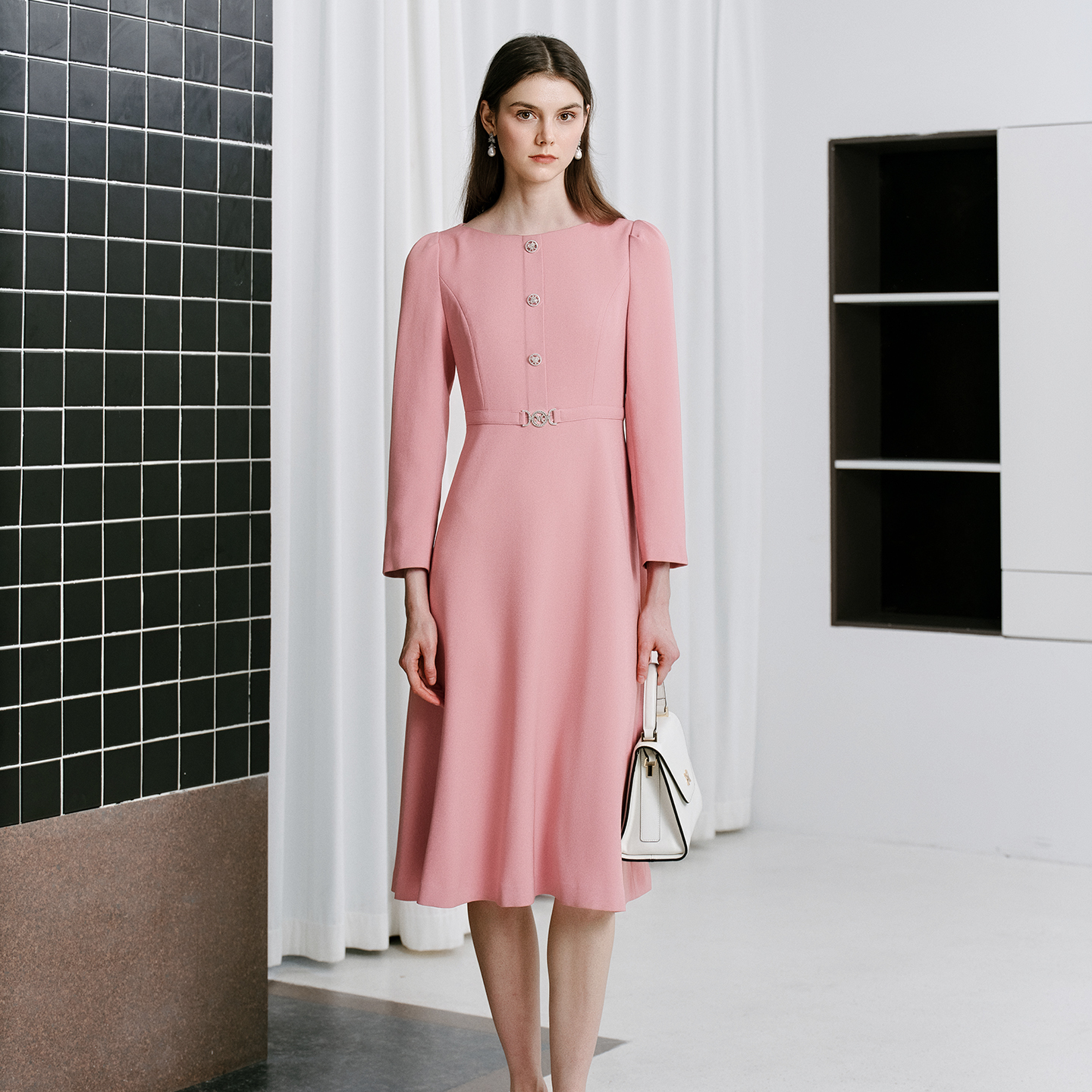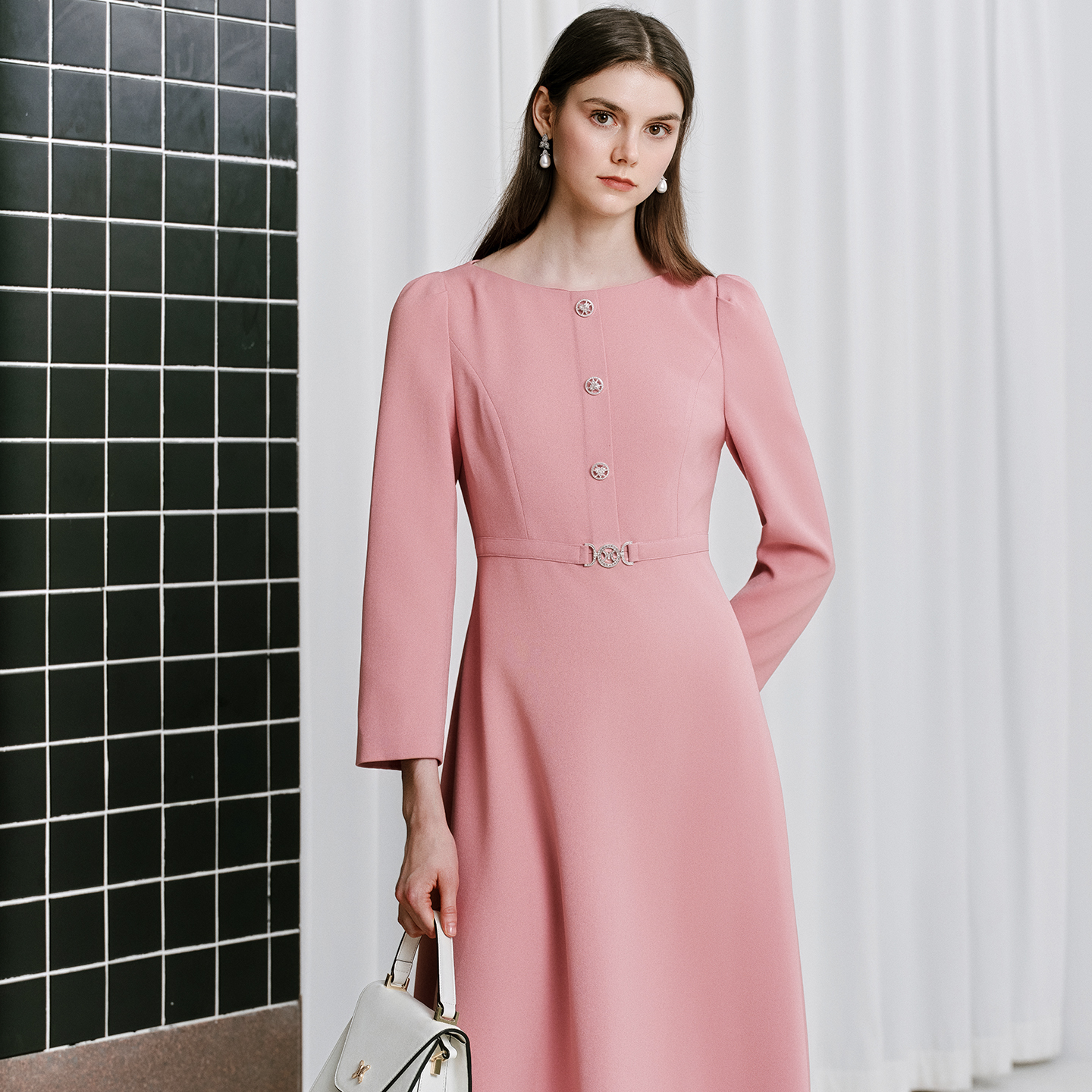 MOJO莫佐2025新款浪漫气质船领连衣裙女士秋冬职场通勤中长裙子
