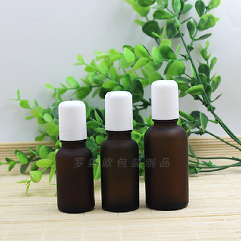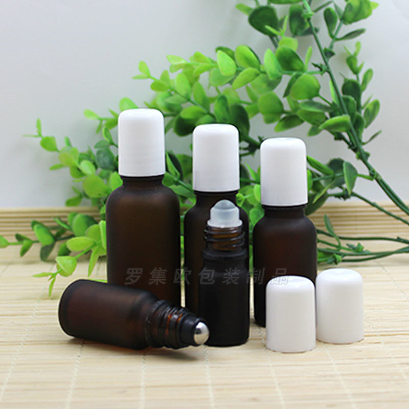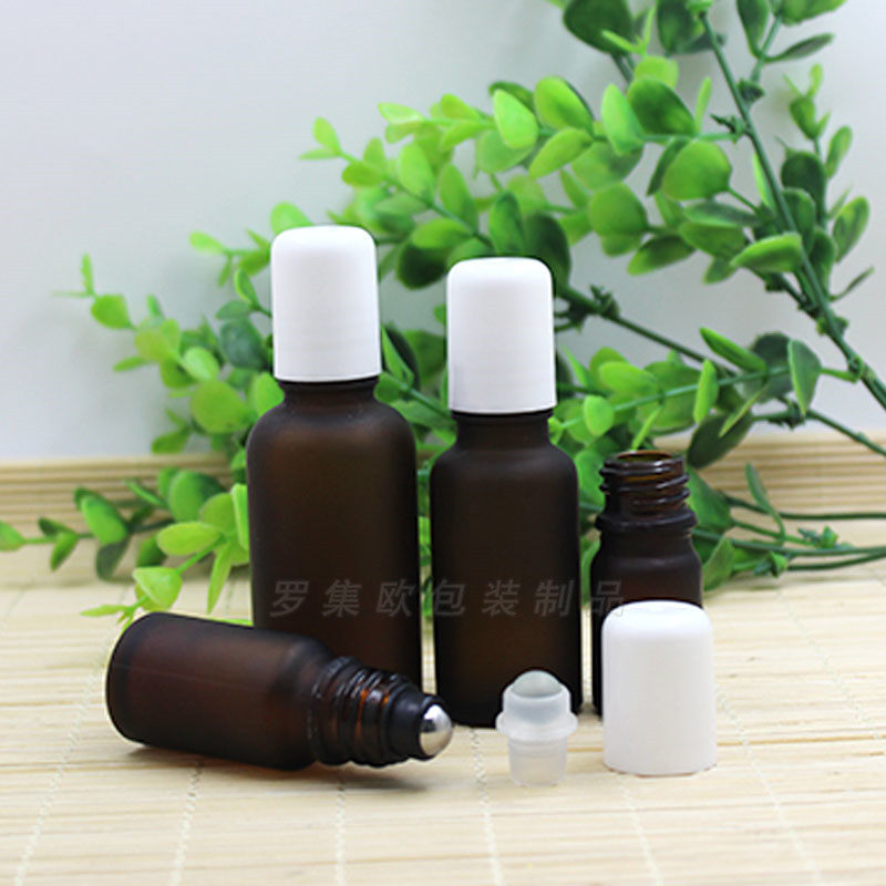 茶色磨砂玻璃精油瓶不锈钢滚珠