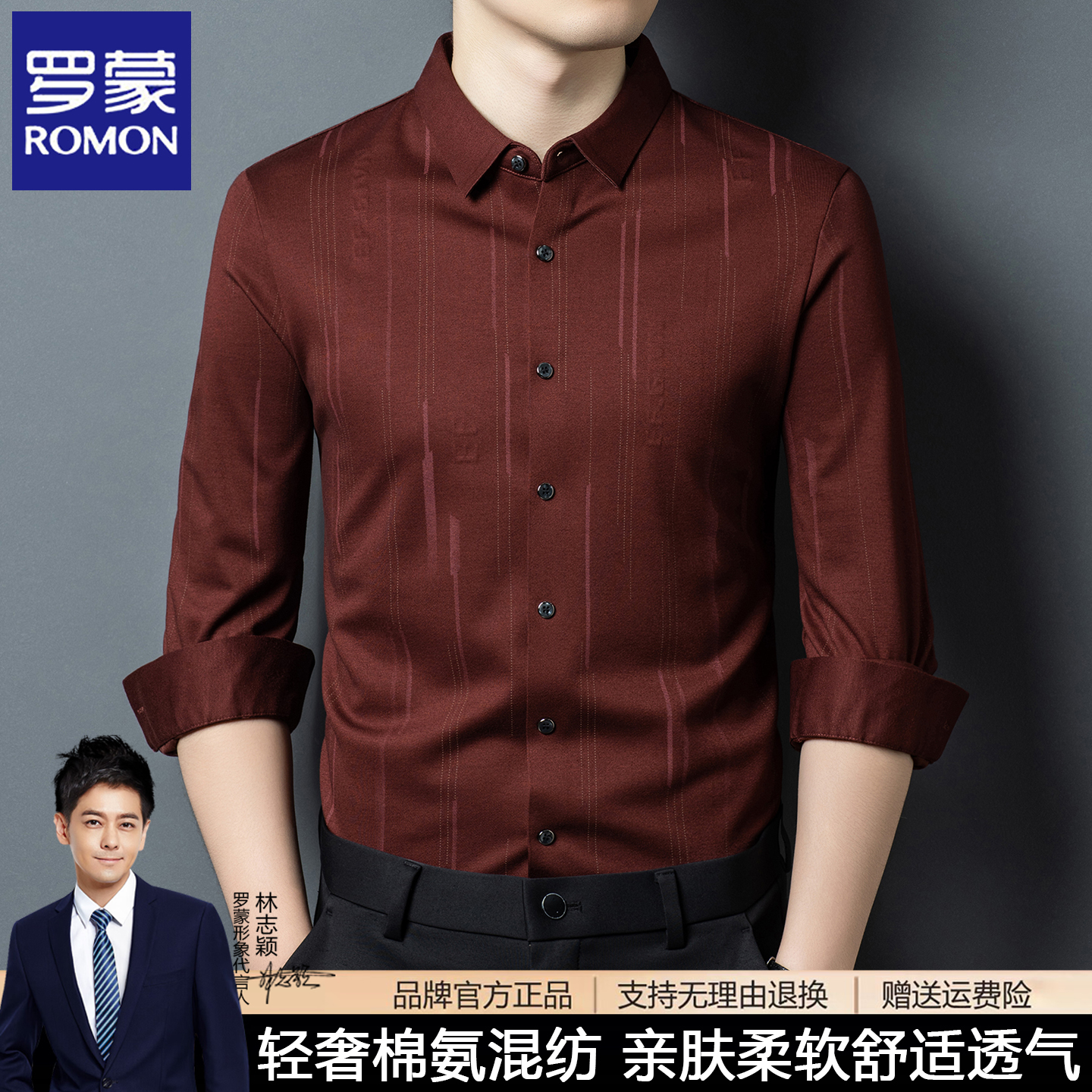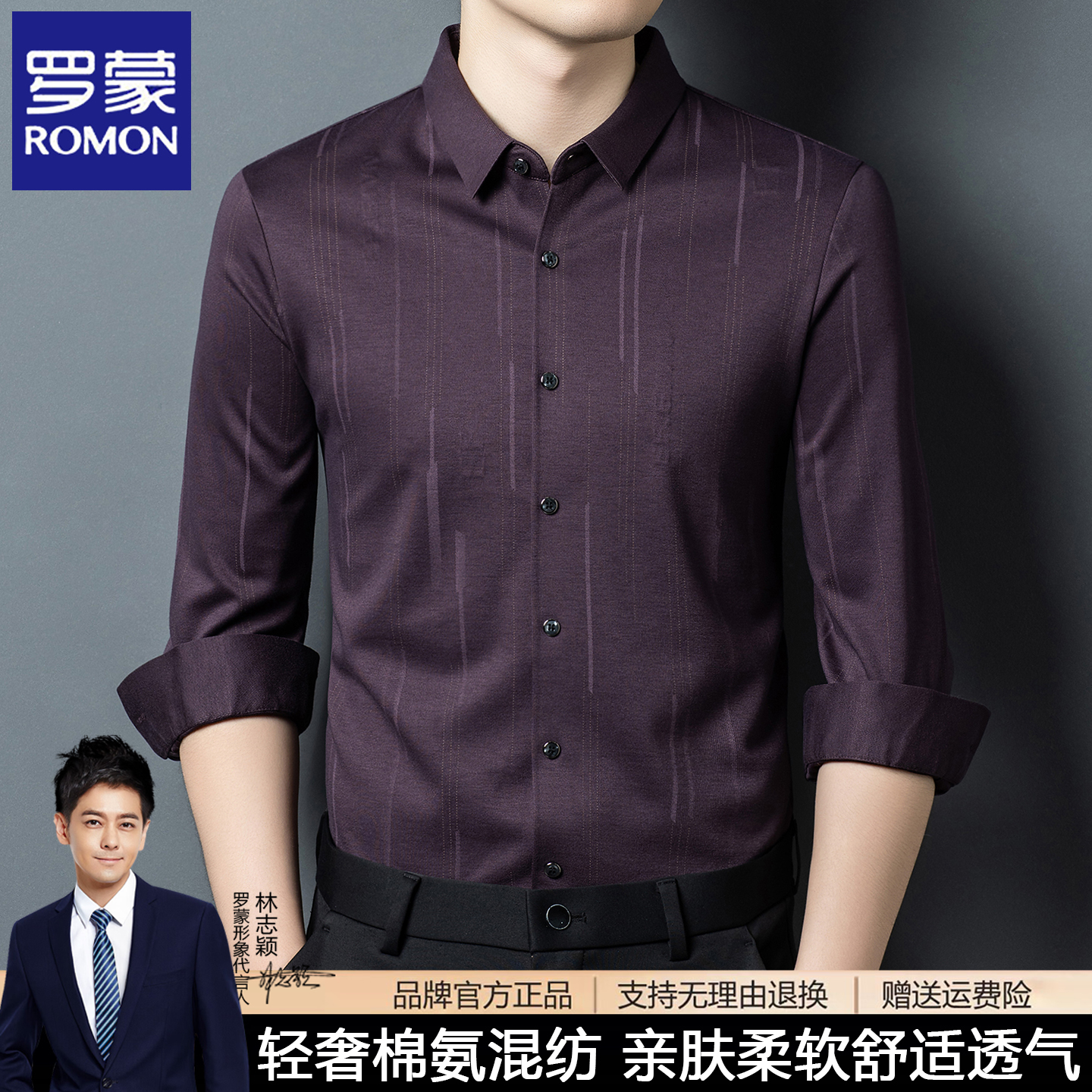 罗蒙2025春秋长袖衬衫男士棉寸衣