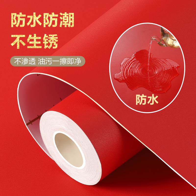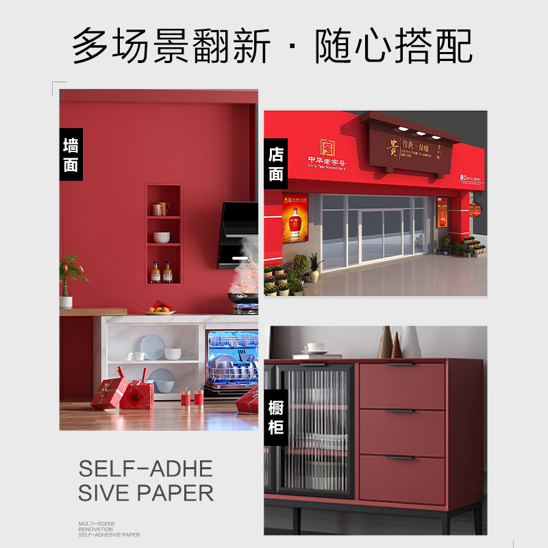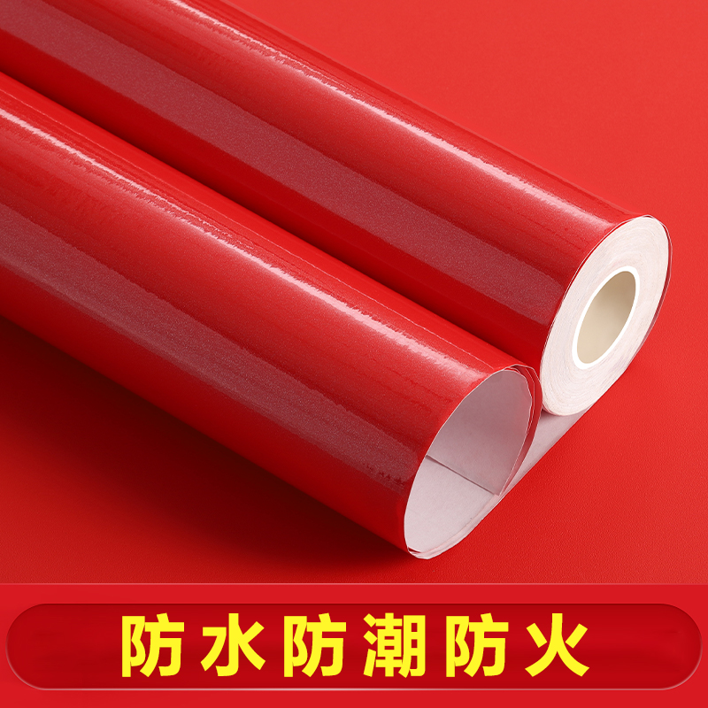 中国红贴纸红底墙纸自粘珠光大贴皮背胶不干胶膜防水广告烤漆亮面