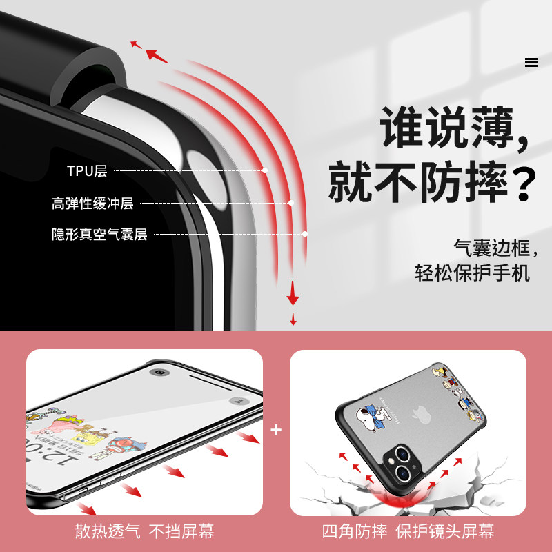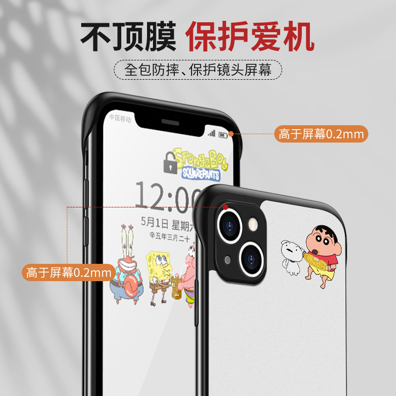 适用于苹果13手机壳无边框12超薄散热iPhone11卡通半包13mini小新7plus透明6splus磨砂xsmax硬壳xr男女8p