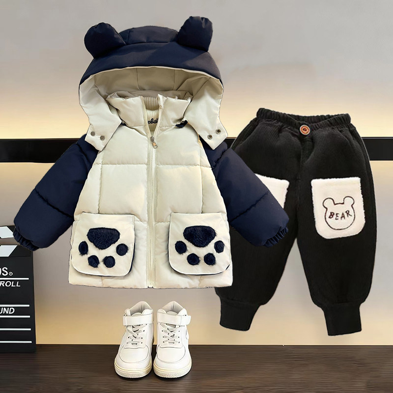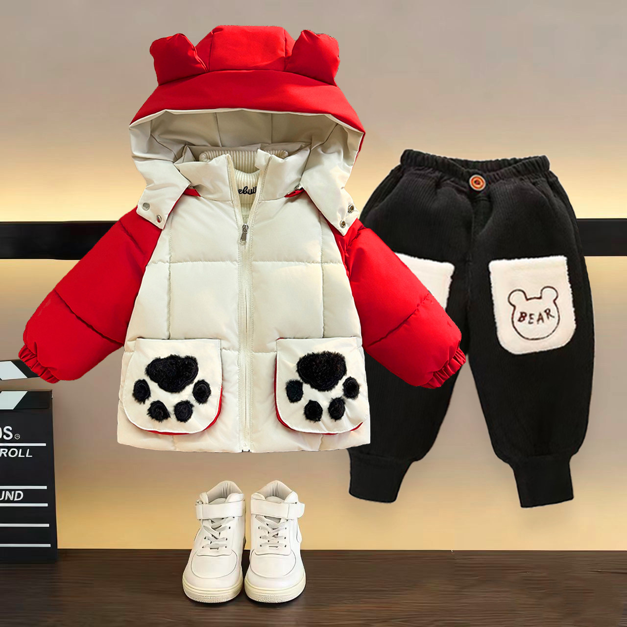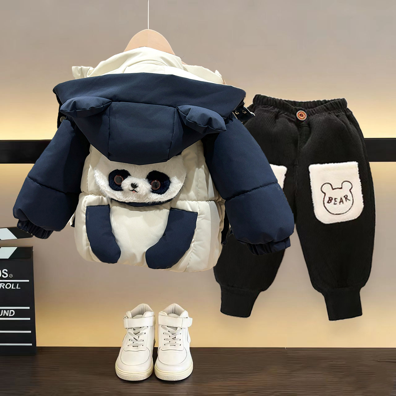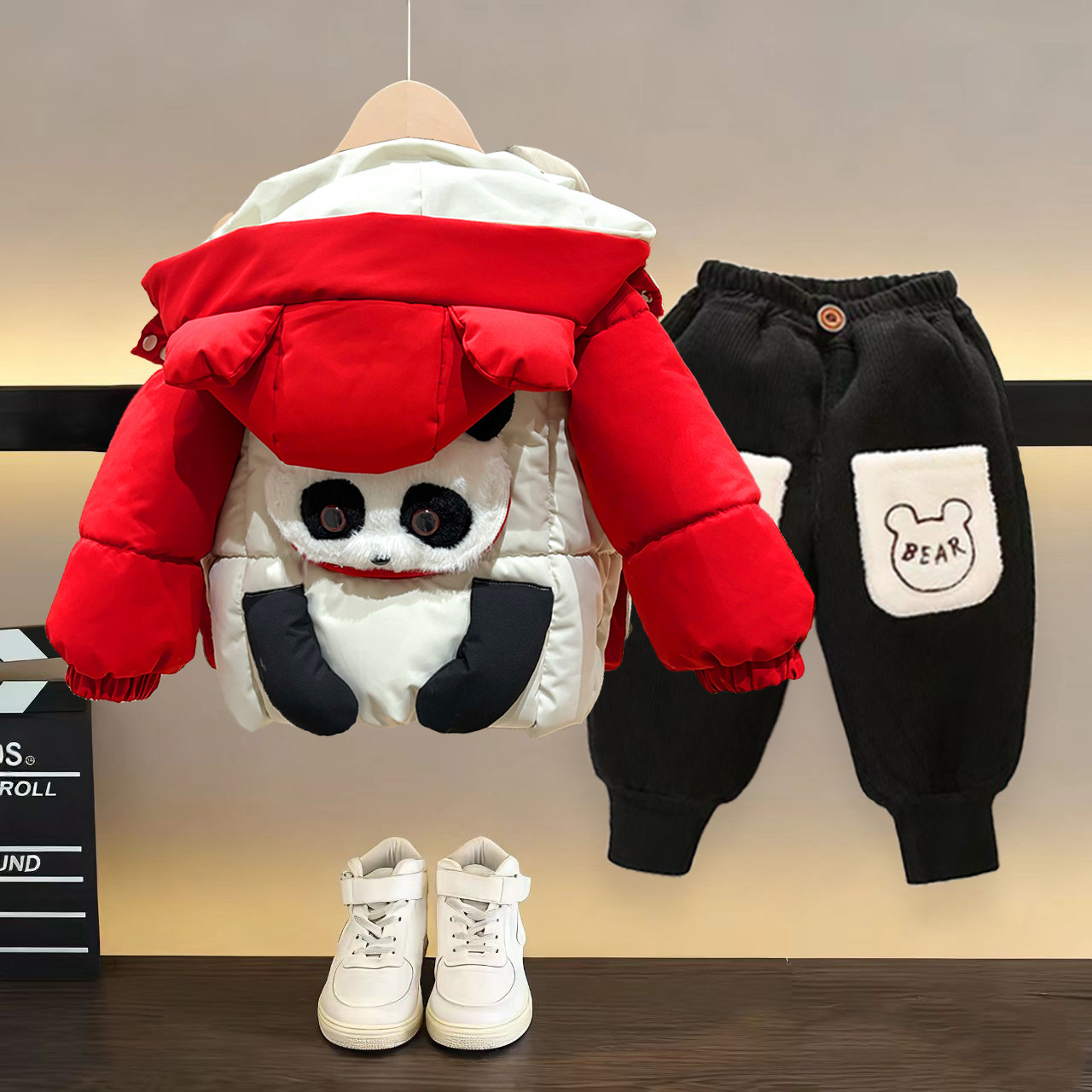 儿童冬装熊猫羽绒棉服套装男童加绒加厚外套男女宝冬季棉衣两件套