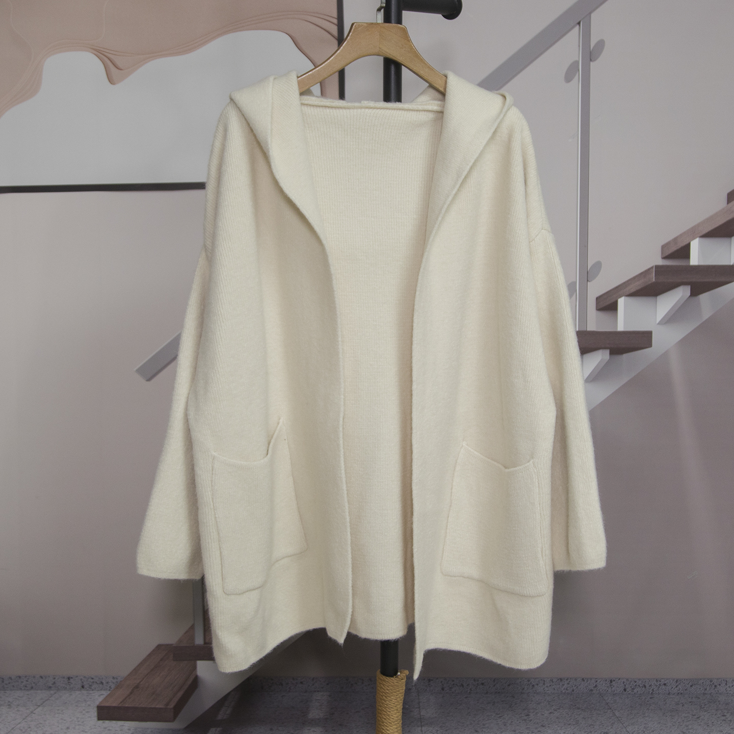 韩版洋气连帽针织开衫