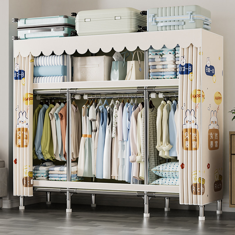 简易衣柜家用卧室结实耐用全钢架加粗加厚组装布衣柜出租房用收纳