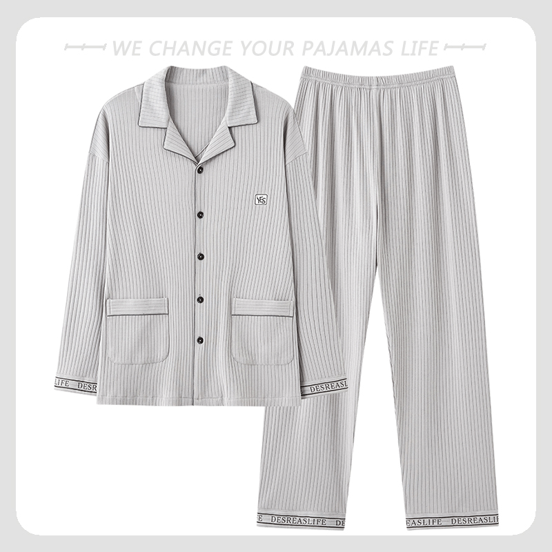 2025年男士睡衣春秋季纯棉长袖宽松大码薄款可外穿开衫家居服套装