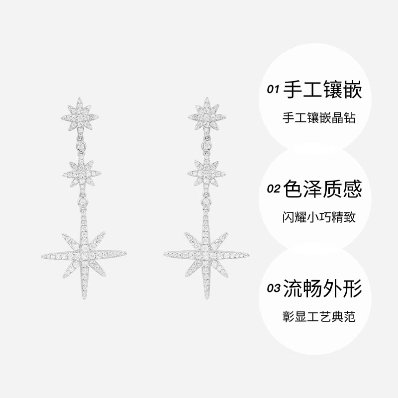 【自营】apm MONACO三星六芒星耳坠银白色耳环品牌直供官方联保