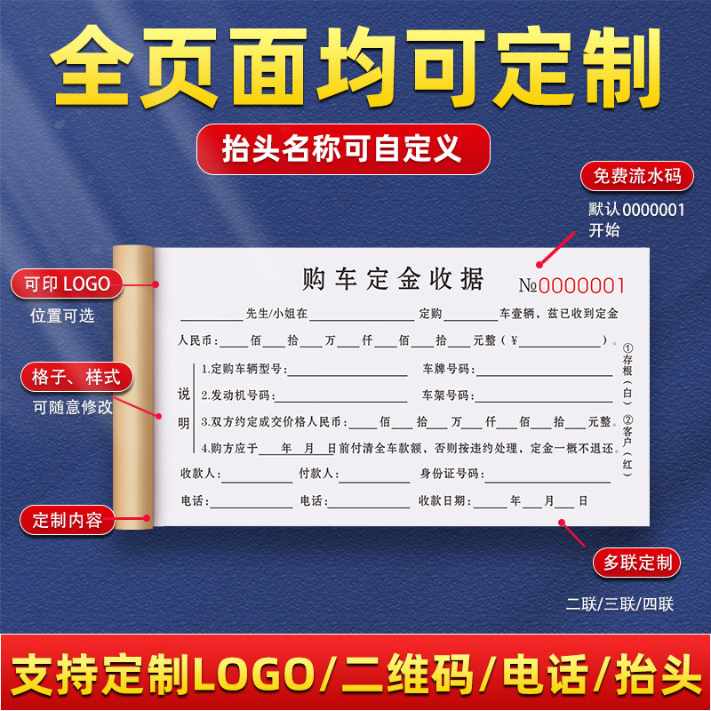 【网红推荐】购车定金收据本定制