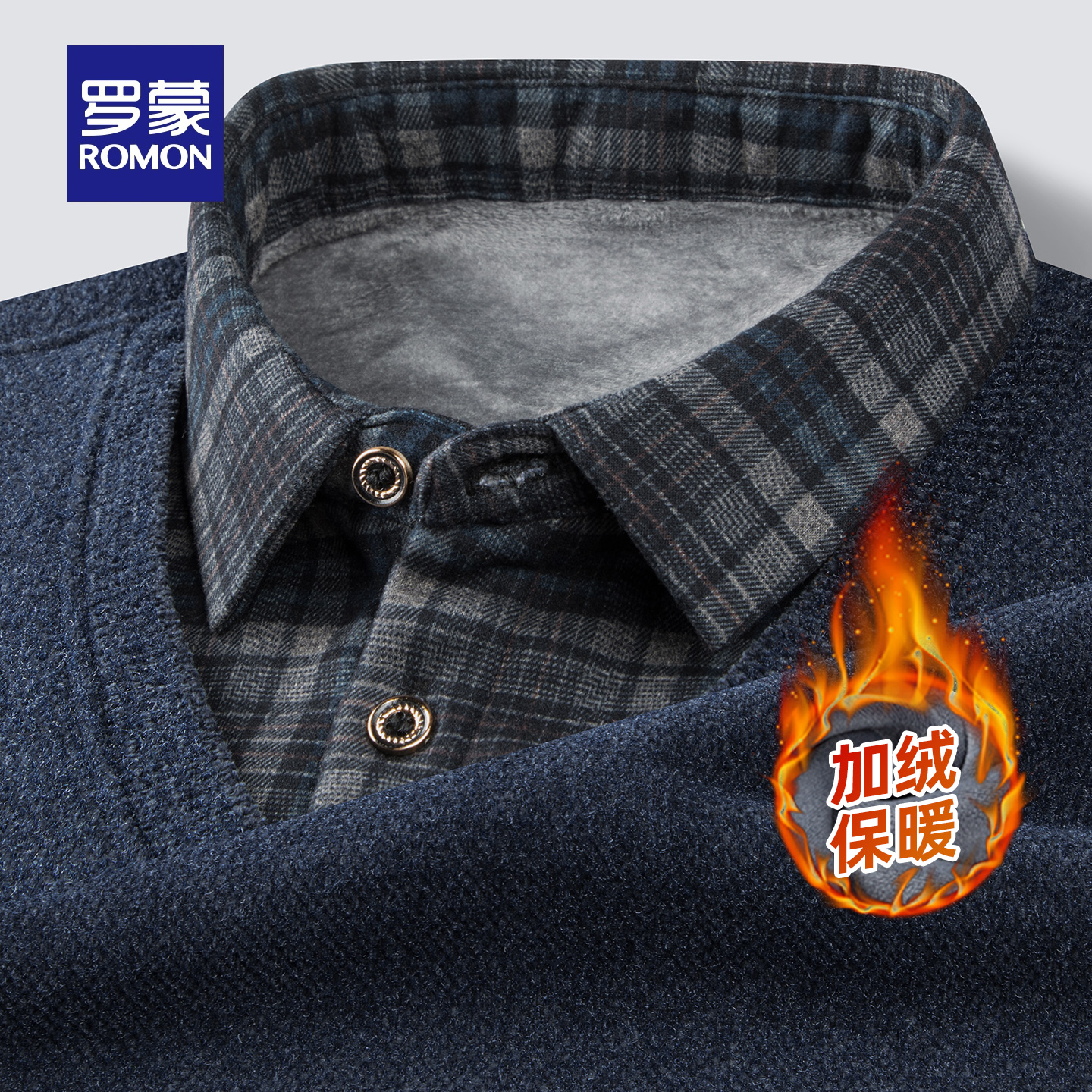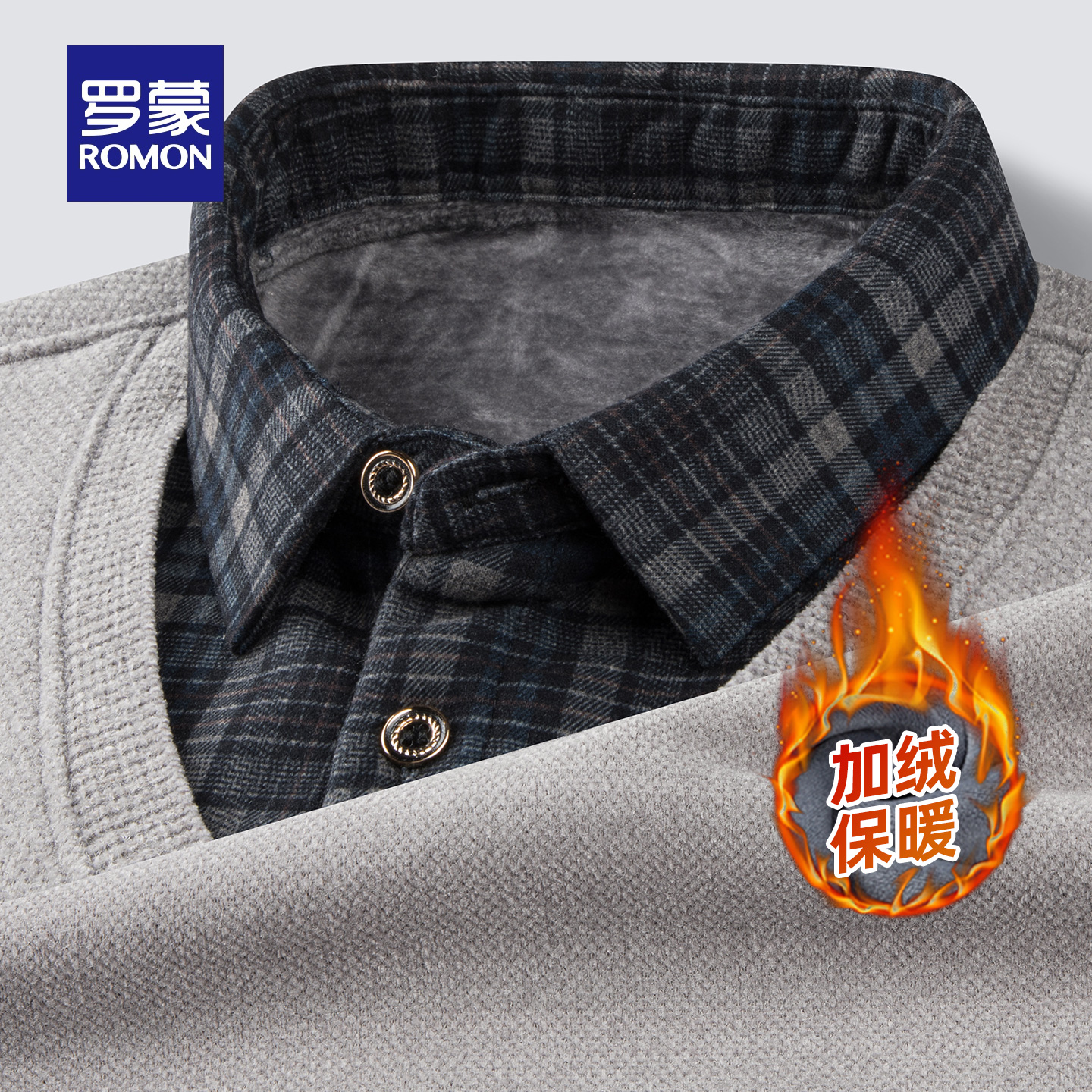【雪尼尔加绒保暖】罗蒙长袖假两件男2025冬季新款商务休闲针织衫