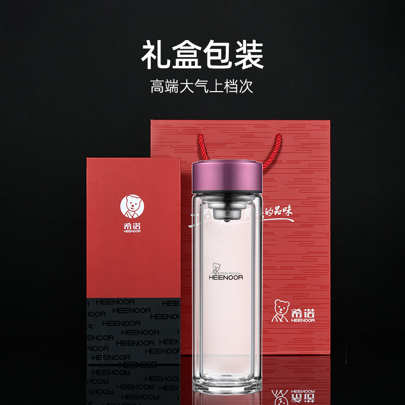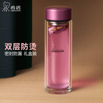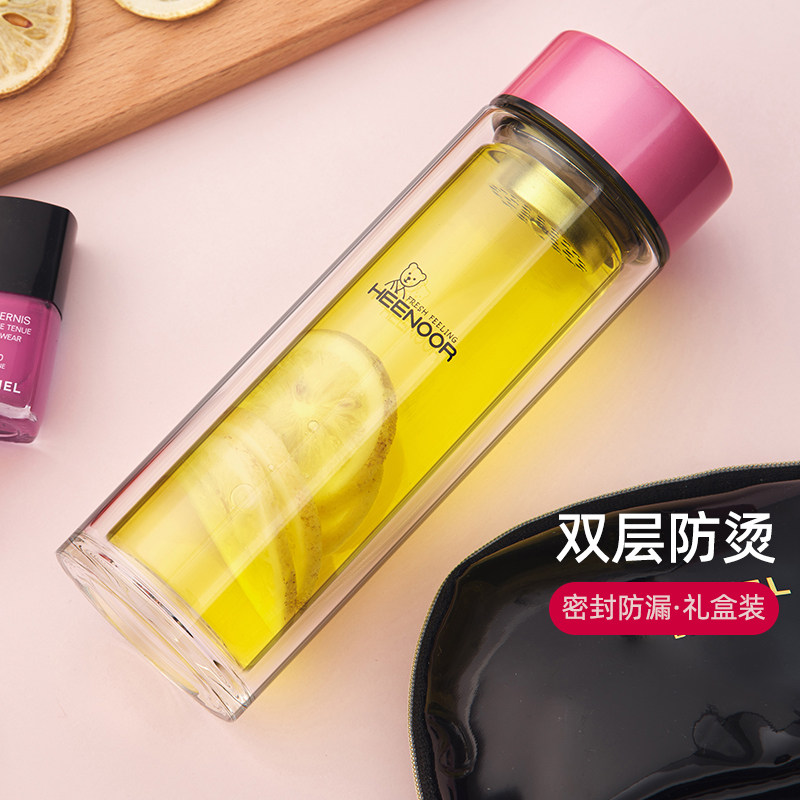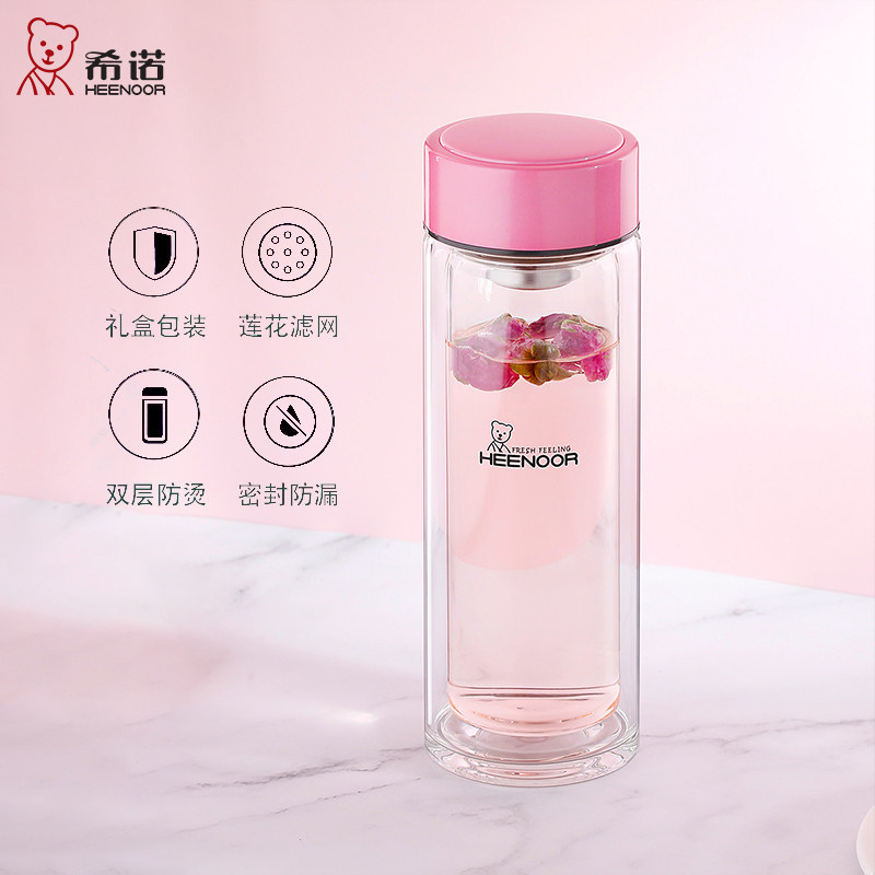 希诺女双层玻璃杯 少女心水杯高颜值水晶杯子 高档精致便携泡茶杯