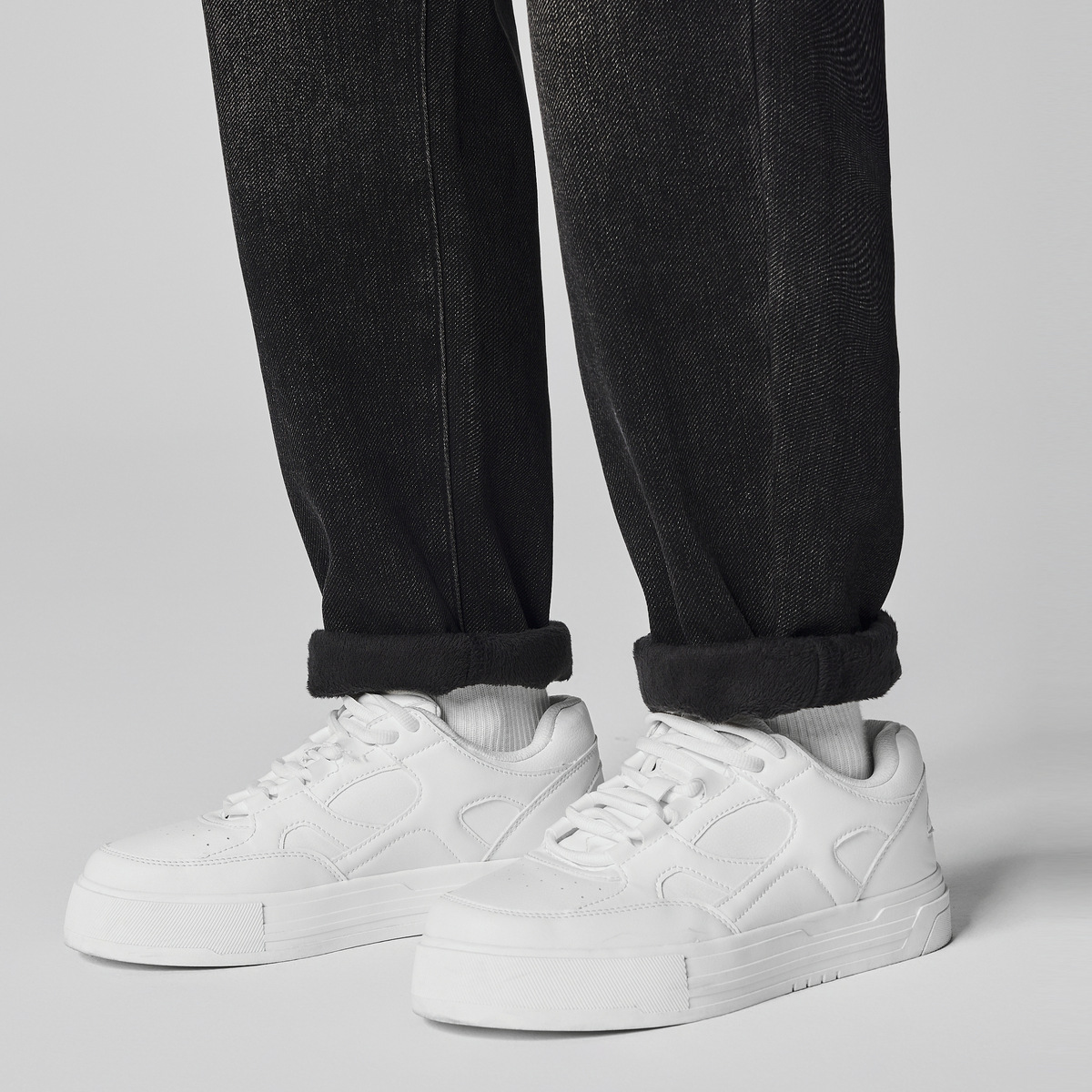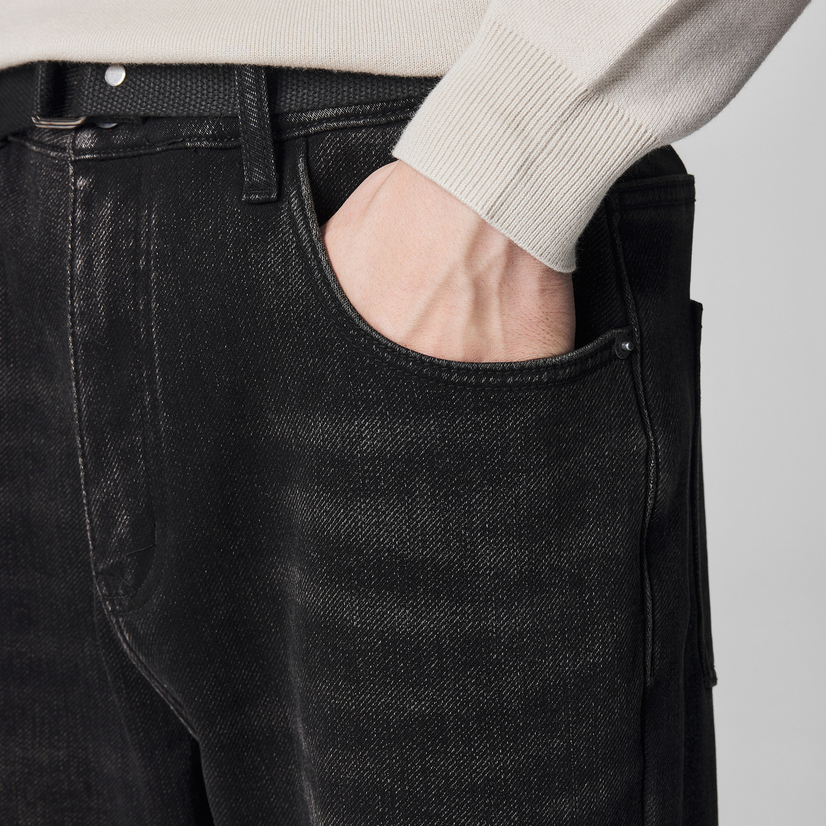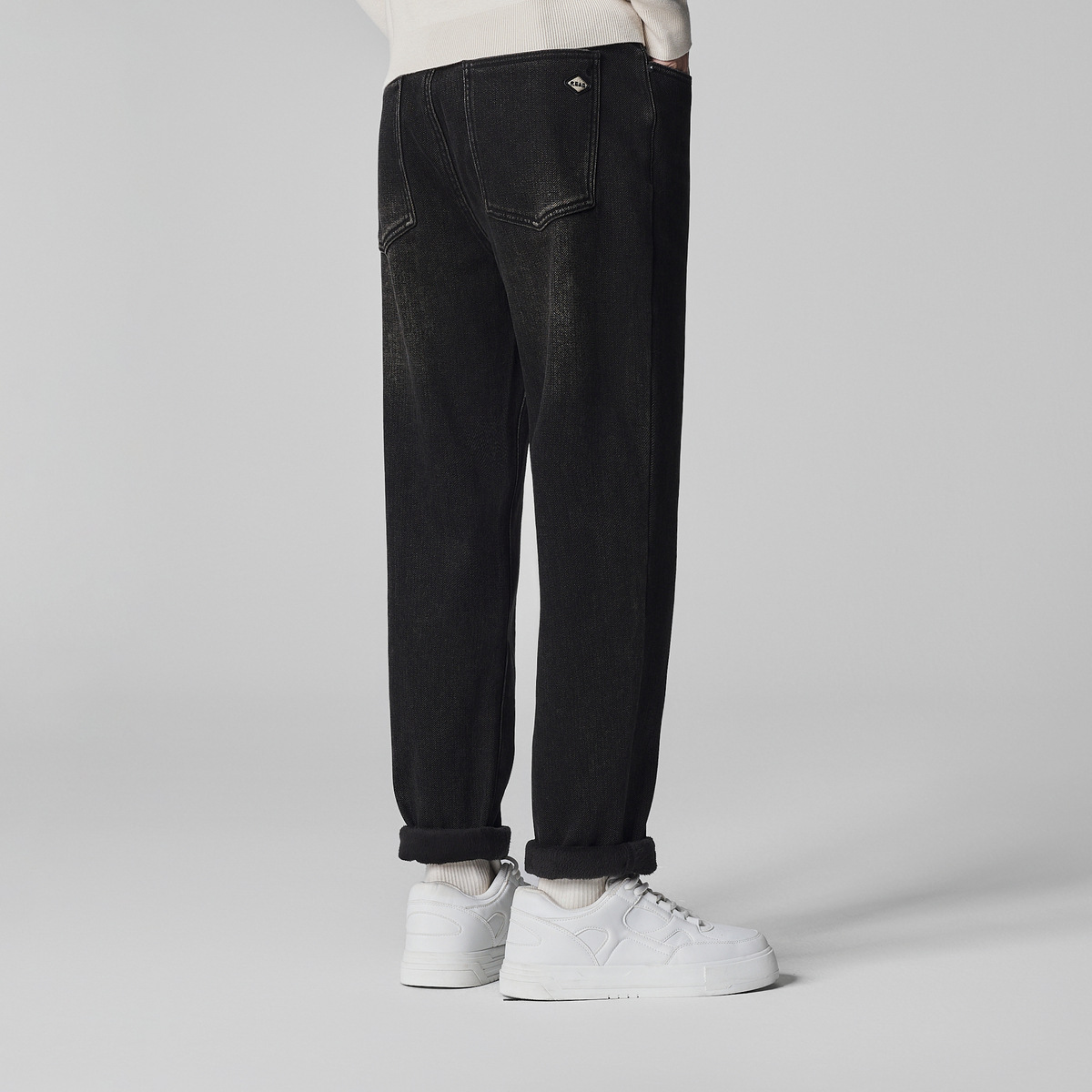 墨麦客男装加绒加厚休闲牛仔裤男士2025冬季银狐绒保暖黑色裤子男