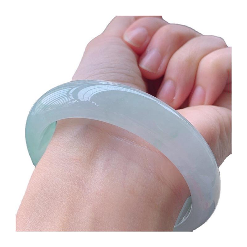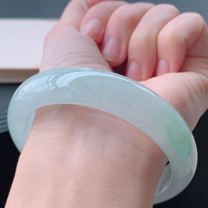 缅甸翡翠手镯冰种正圈贵妃细条圆镯女冰种白底青玉石翡翠飘绿处理
