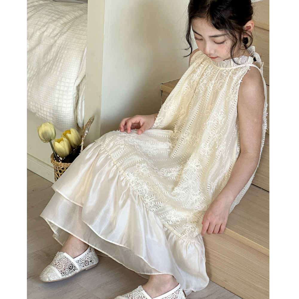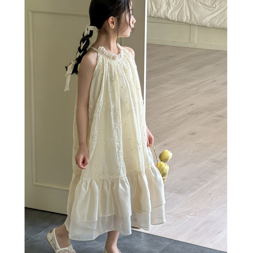 女童夏装连衣裙2026新款洋气女孩无袖背心裙夏季女大童吊带蕾丝裙