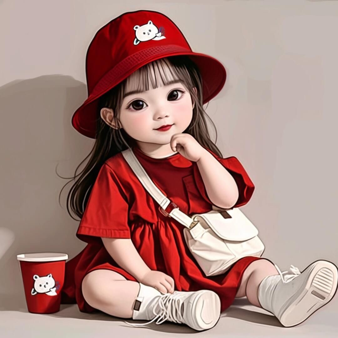 可爱女童萌宝图片儿童房间贴墙防水自粘贴纸贴画装饰画红色卫衣