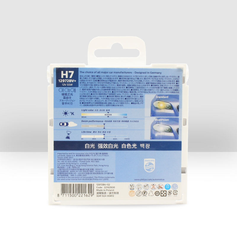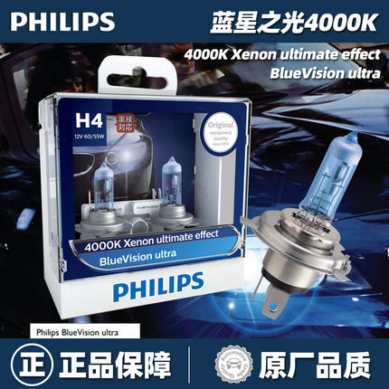 飞利浦蓝星之光蓝战士BV汽车灯泡H1H4H9HB3HB4前大灯远近光4000K