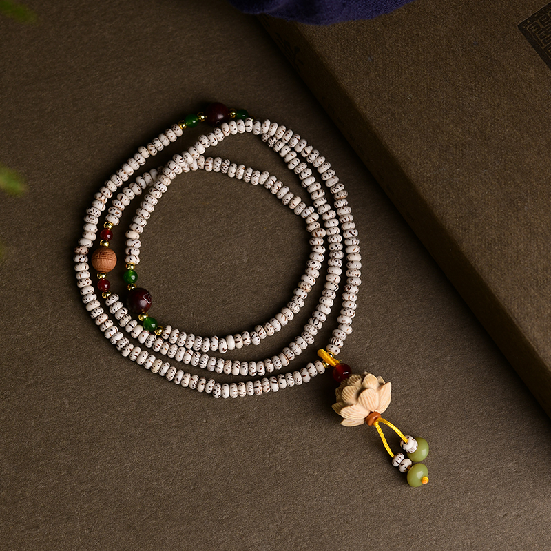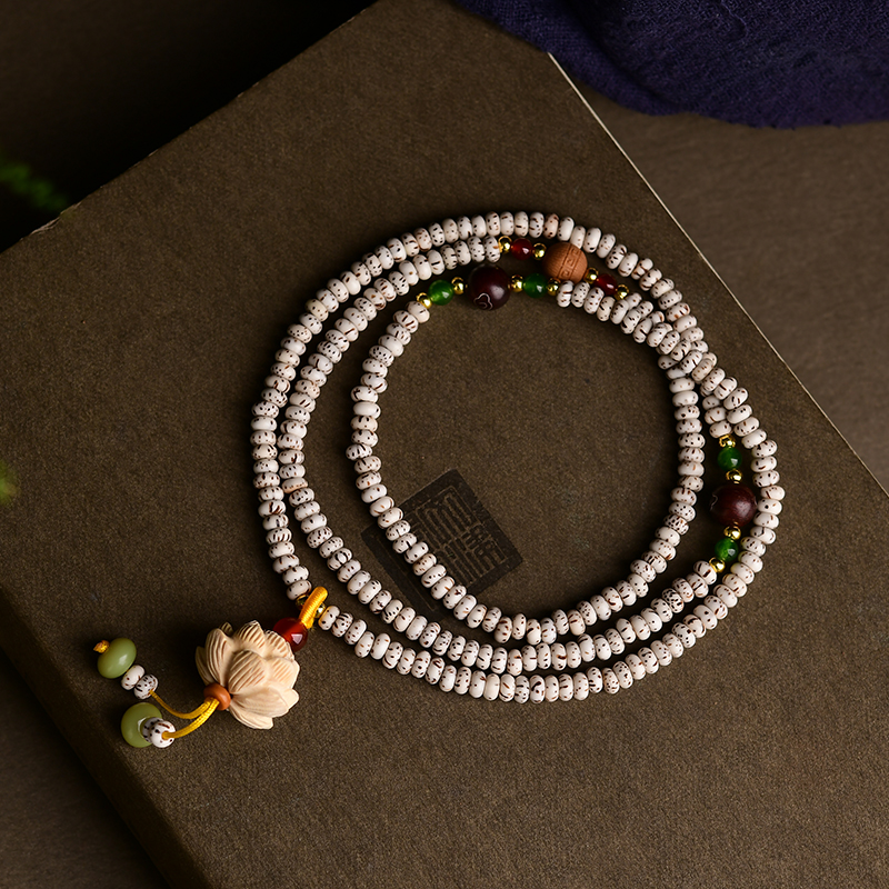4.6*2mm星月菩提子四圈手链手串项链两用款 搭配黄杨木莲花 DS20