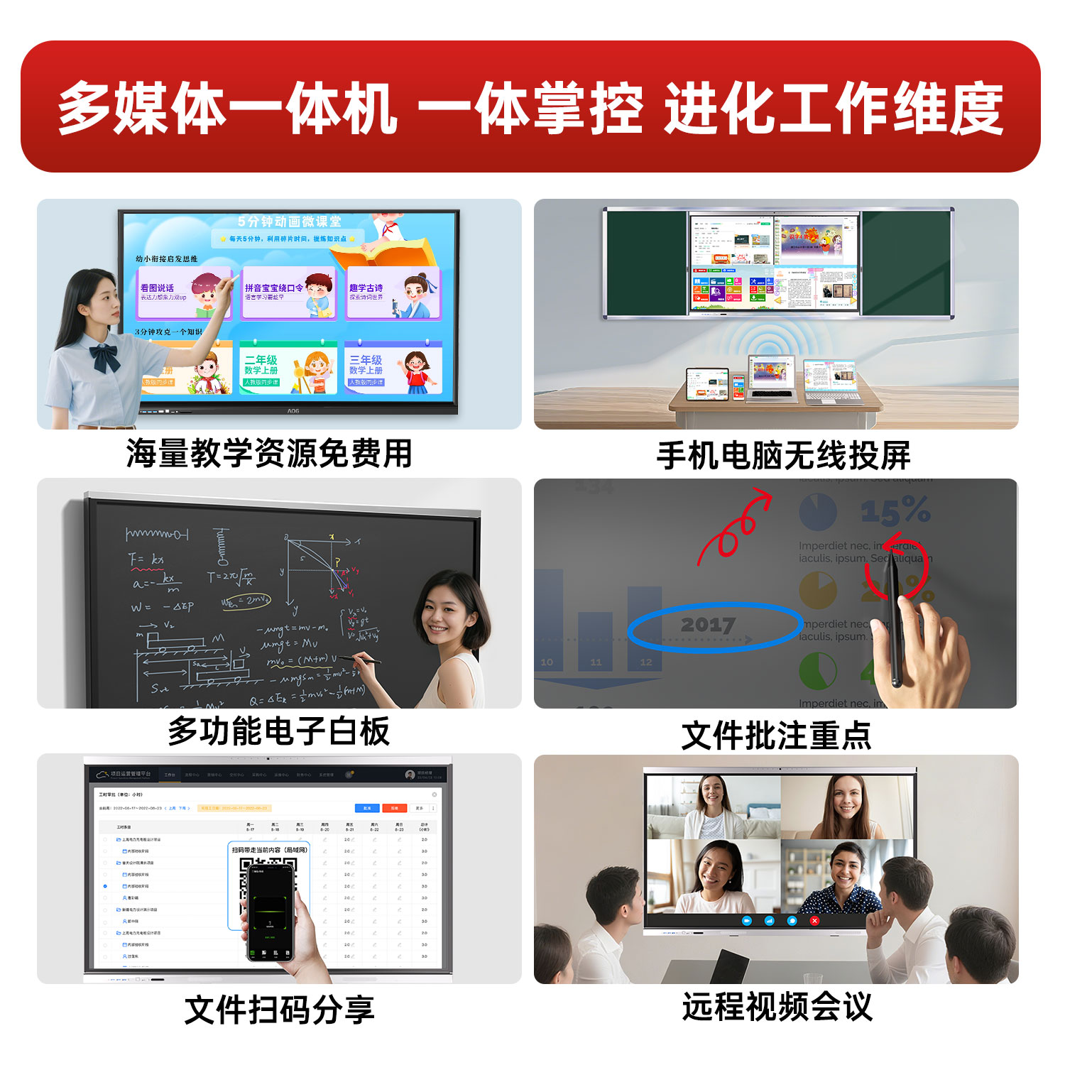 AOG多媒体教学平板一体机触摸屏智能电子白板黑板幼儿园培训机构讲课电脑会议办公多功能触控屏55/65/86寸
