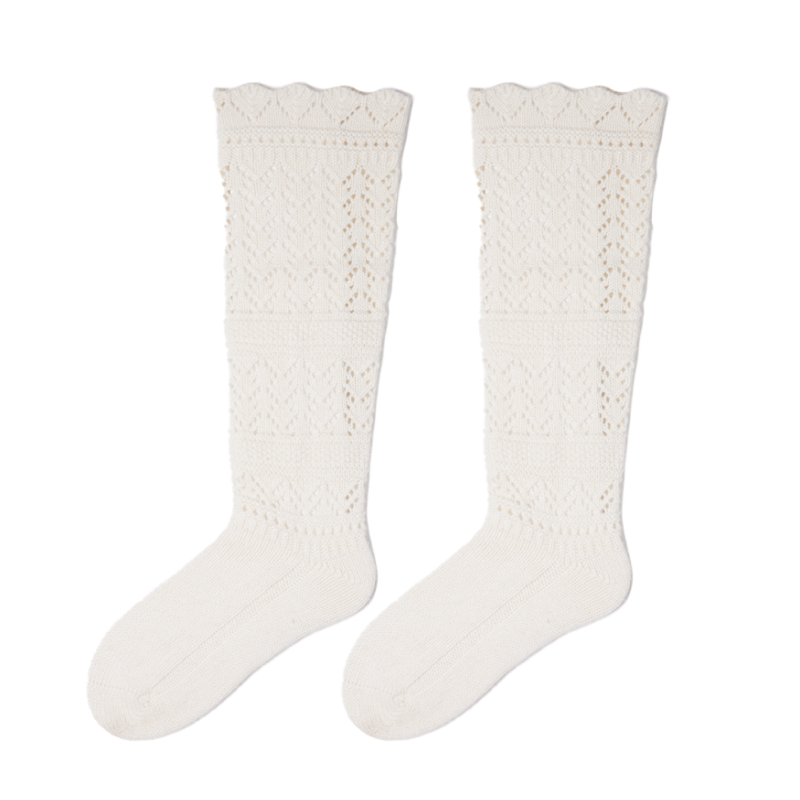 弥构小腿花边镂空羊毛甜美中筒袜