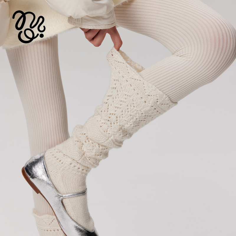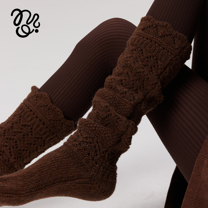 mingoto秋冬镂空羊毛堆堆花边保暖针织中筒袜子女甜美重工小腿袜