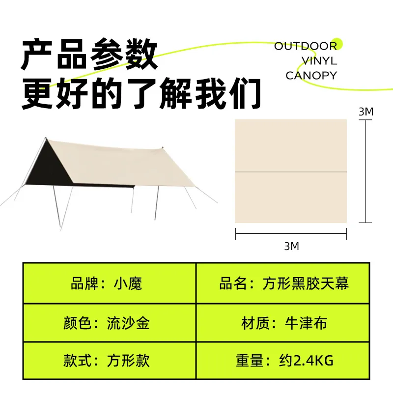 小魔户外露营黑胶天幕方形流沙金棚防晒防雨遮阳银胶帐篷天幕