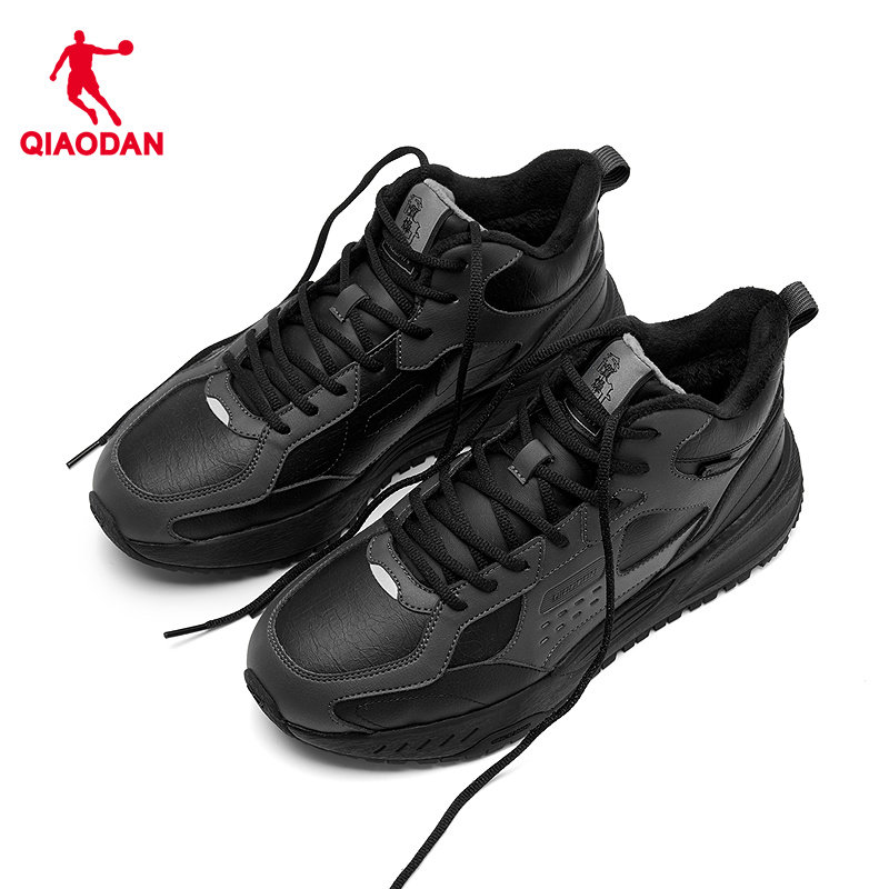 乔丹高帮加绒保暖棉鞋男冬季新品革面防水休闲黑色官方正品运动鞋