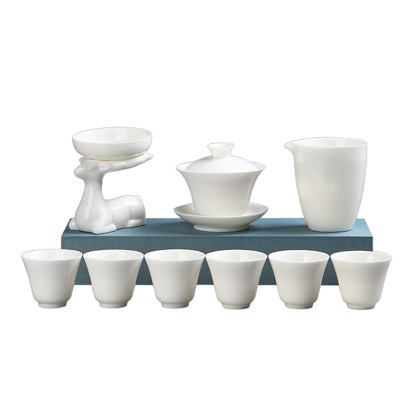 羊脂玉瓷功夫茶具套装纯白瓷LOGO礼品定制店铺开业公司活动伴手礼