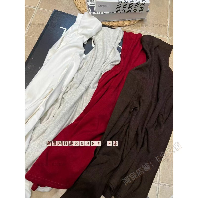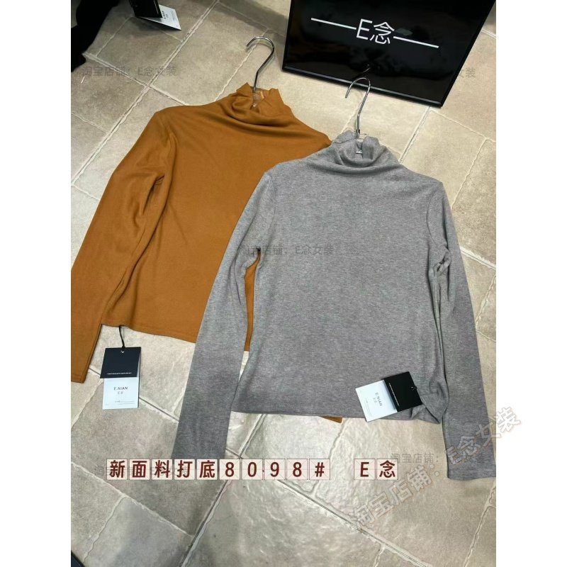 E念8098高领波点长袖t恤女冬季新款木耳边堆堆领上衣磨毛打底衫女