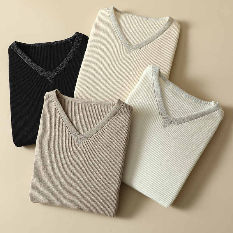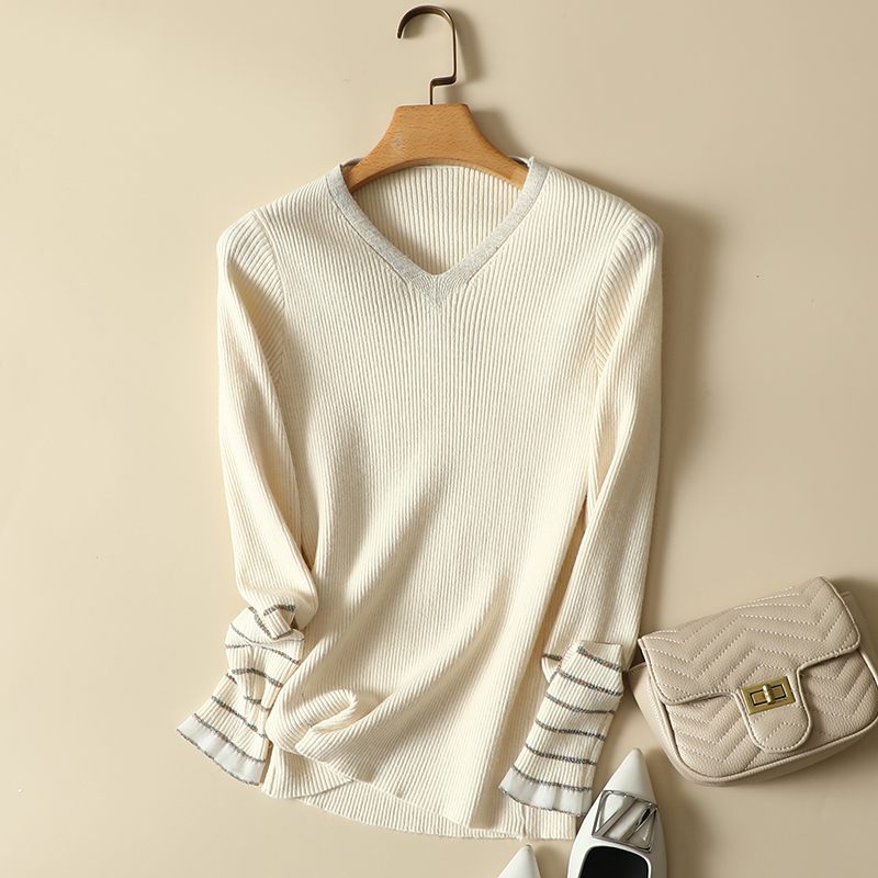 春装女2024年新款V领套头毛衣女蕾丝韩版显瘦上衣内搭针织打底衫