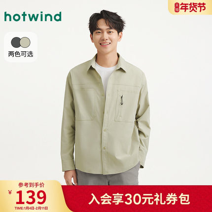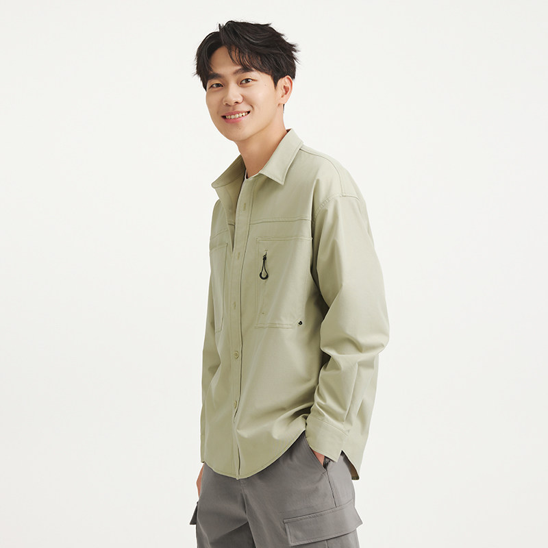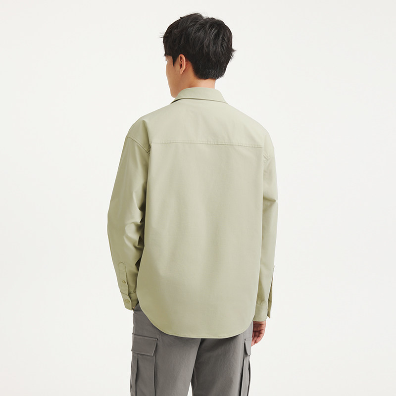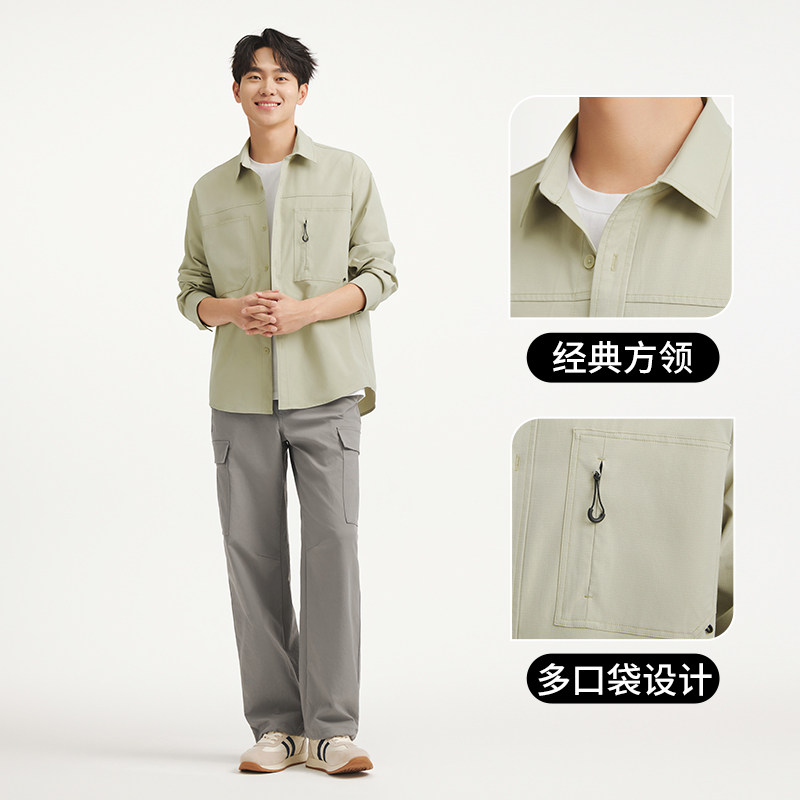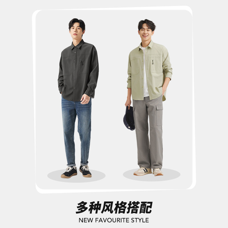热风男士翻领长袖衬衫2025年秋季新款户外衬衣工装风初秋薄款外套