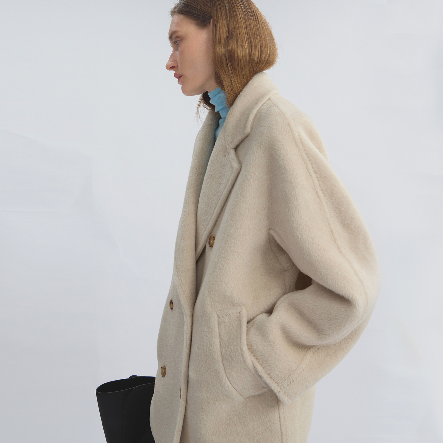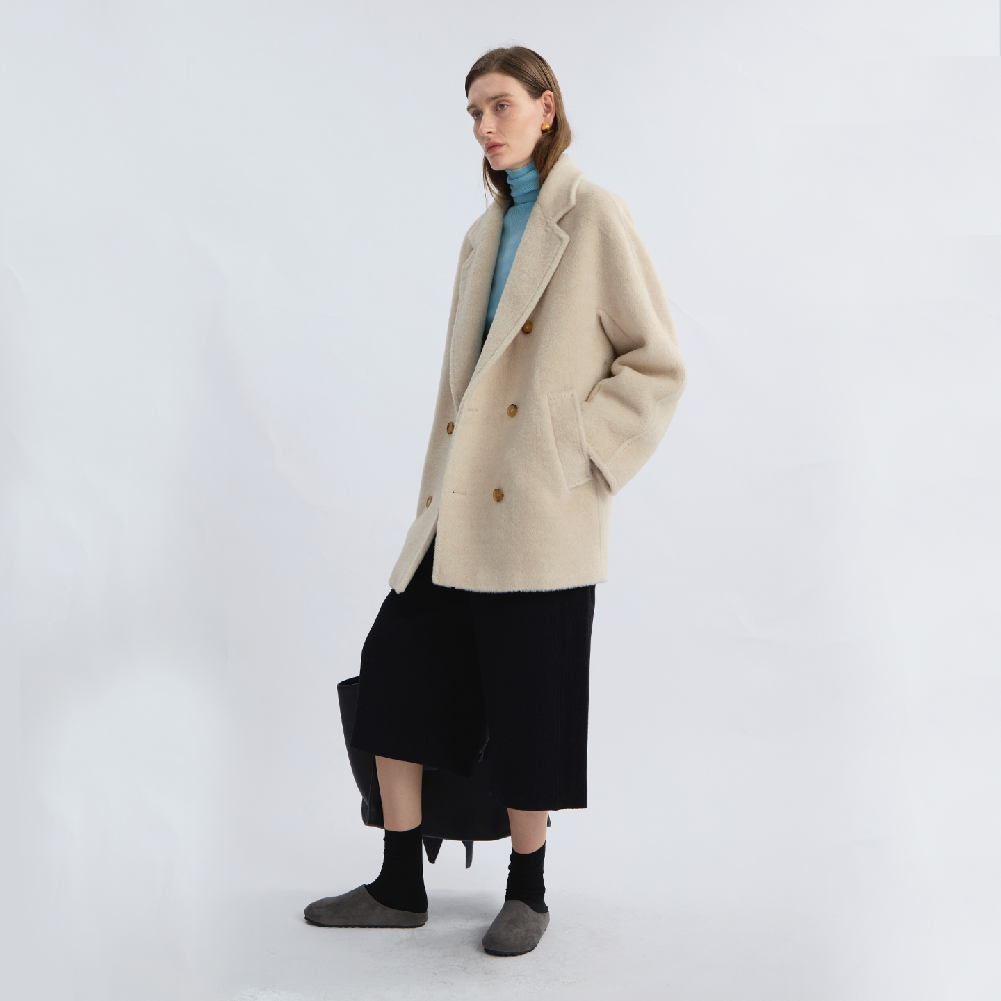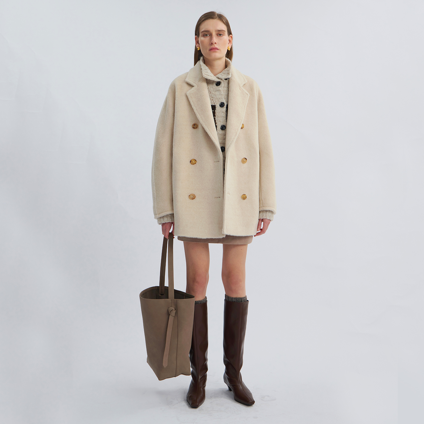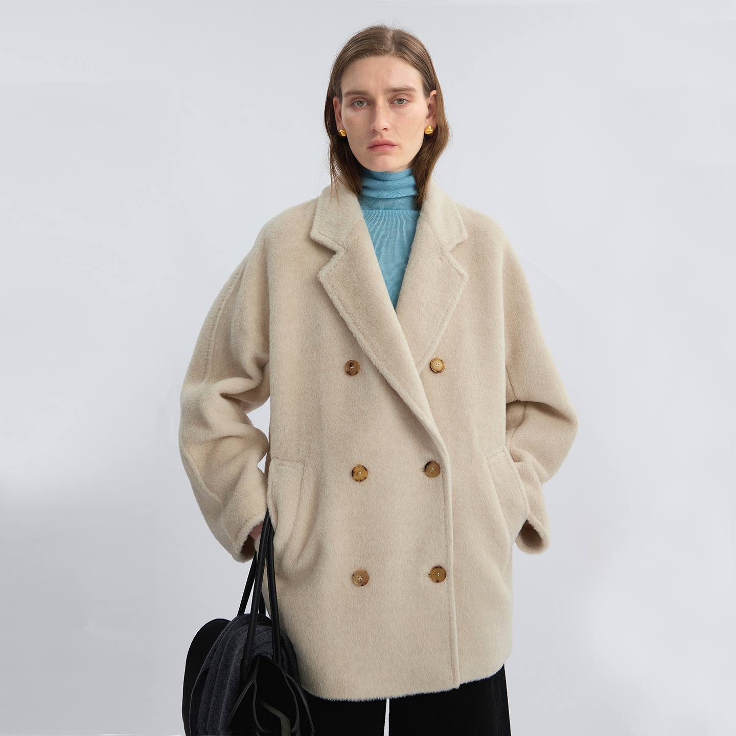LIAC ROC2025秋冬双排扣大衣女中长款新款百搭宽松休闲毛呢外套