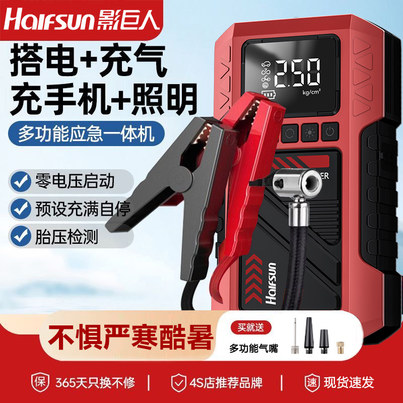 影巨人汽车应急启动电源车载充气泵一体机电瓶紧急搭电宝打火神器
