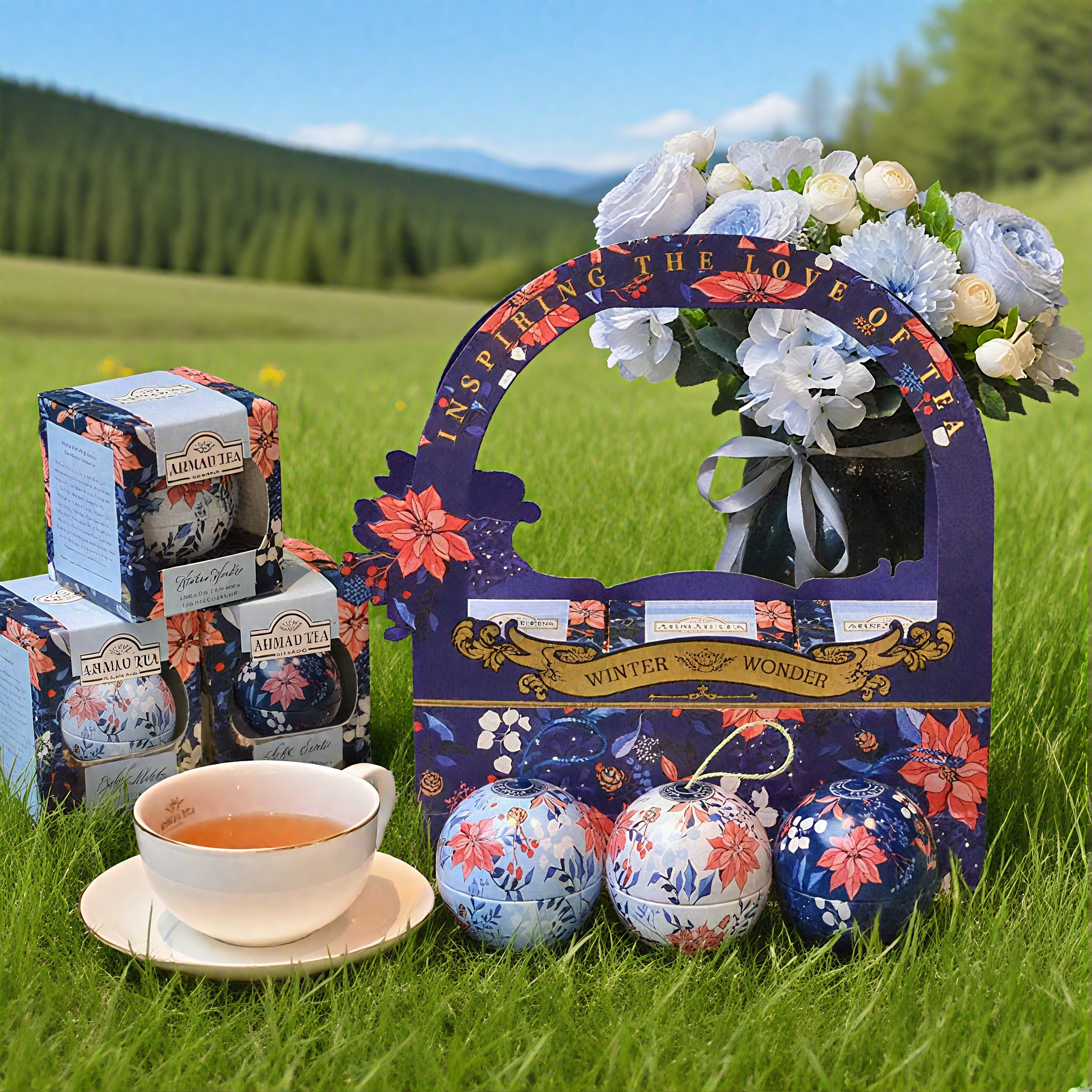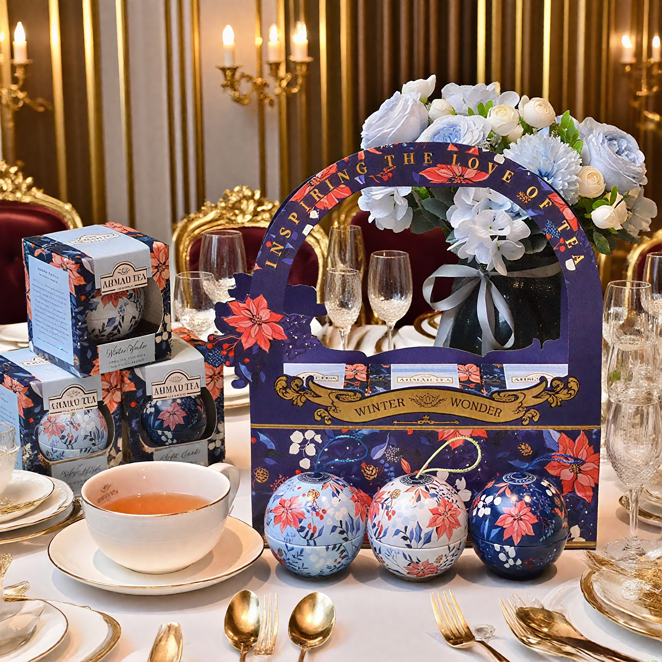 英国AHMAD TEA亚曼茶浪漫花语圣诞茶球礼罐高档伴手礼红茶礼盒