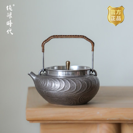 纯银时代文创设计紫霞烧水壶家用银壶足银999手工一张打煮水880ml