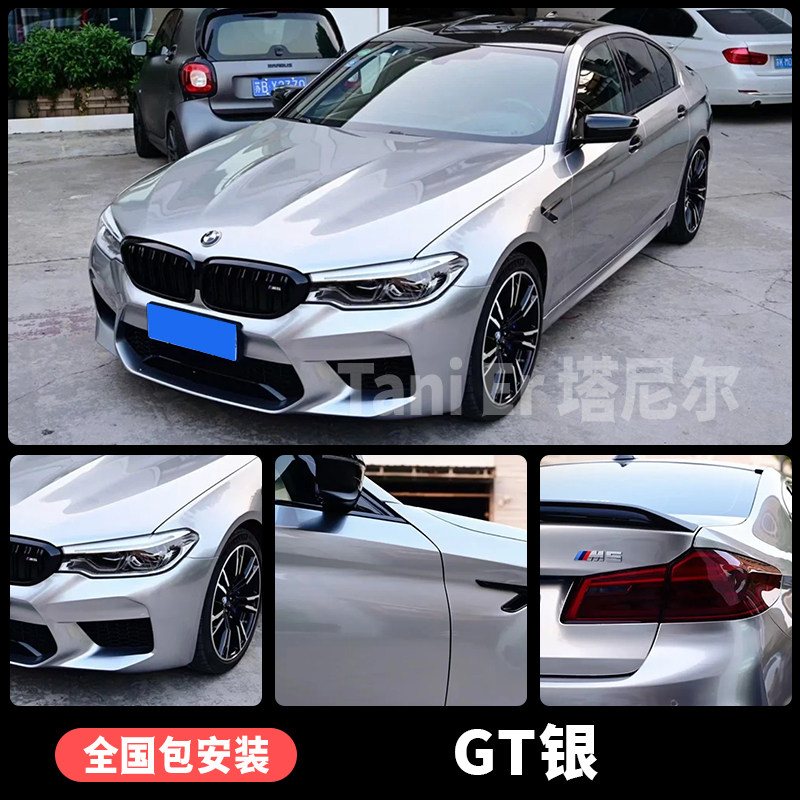 宝马M3M5车身改色膜火山灰沙漠风暴GT银汽车保护贴膜全车贴包施工