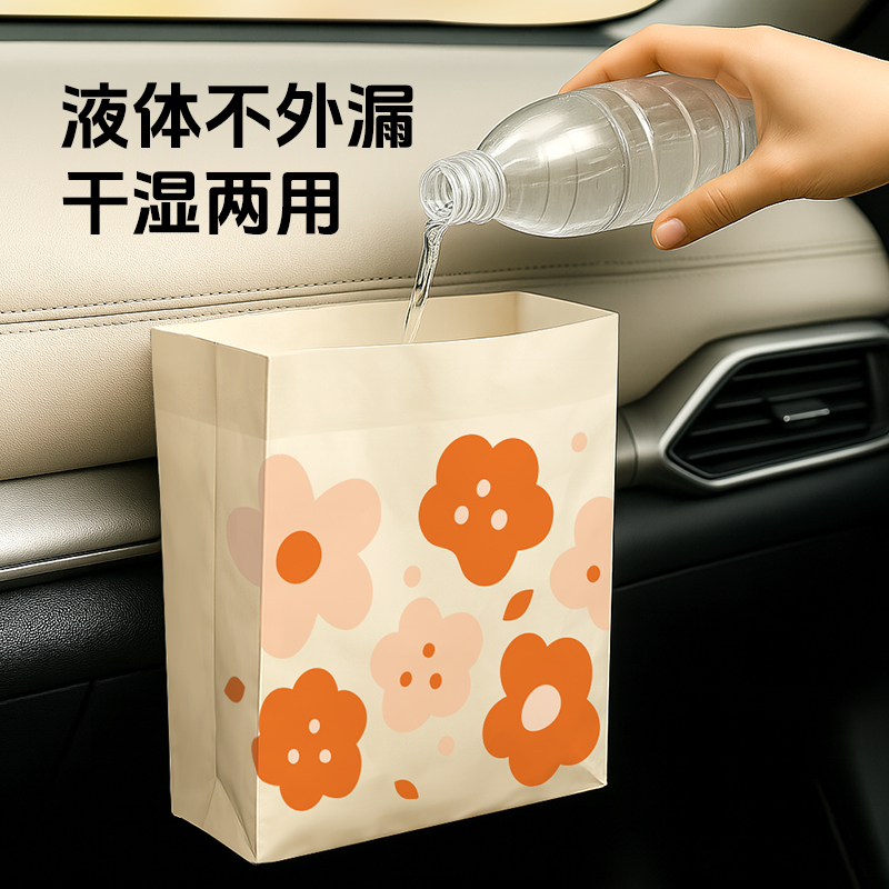 便携式车载垃圾袋自粘贴式可站立汽车内用清洁袋一次性垃圾桶小号
