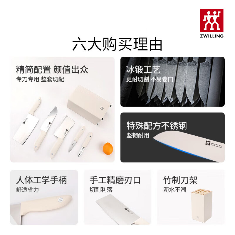 德国双立人Point S刀具中片刀多用刀砍骨刀家用刀具组合套装白色
