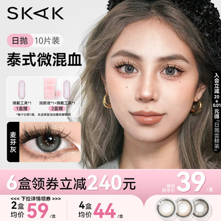 泰式奶茶灰色美瞳日抛轻混血三明治隐形眼镜SKAK正品官网旗舰店女