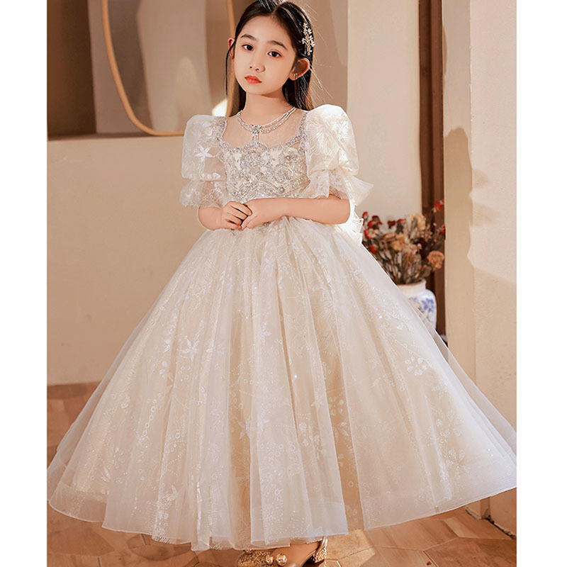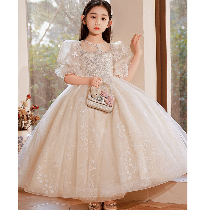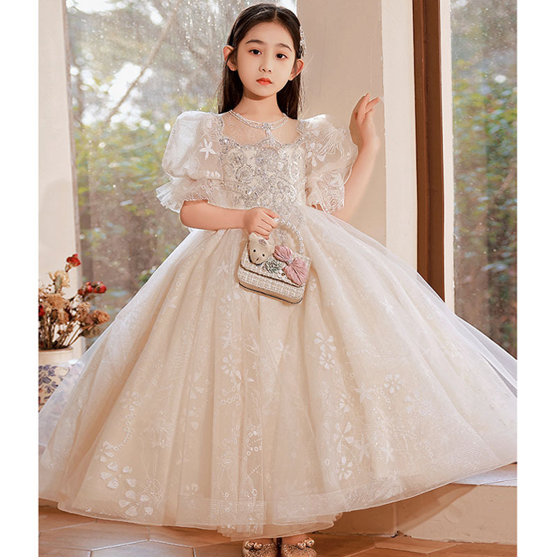 儿童礼服公主裙2025花童泡泡袖婚礼蓬蓬纱女童主持人钢琴演出礼服