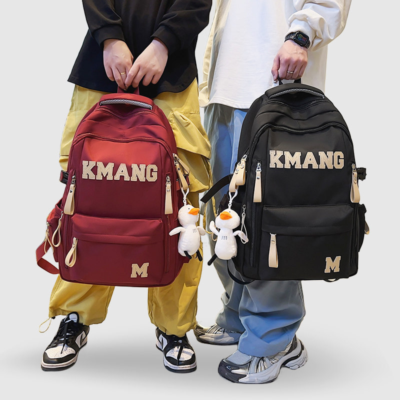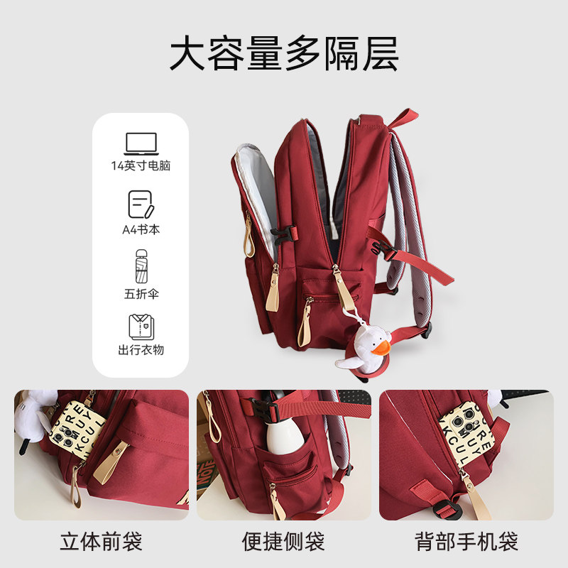 高中学生大学生减负书包女生酒红色背包初中生男生大容量双肩包