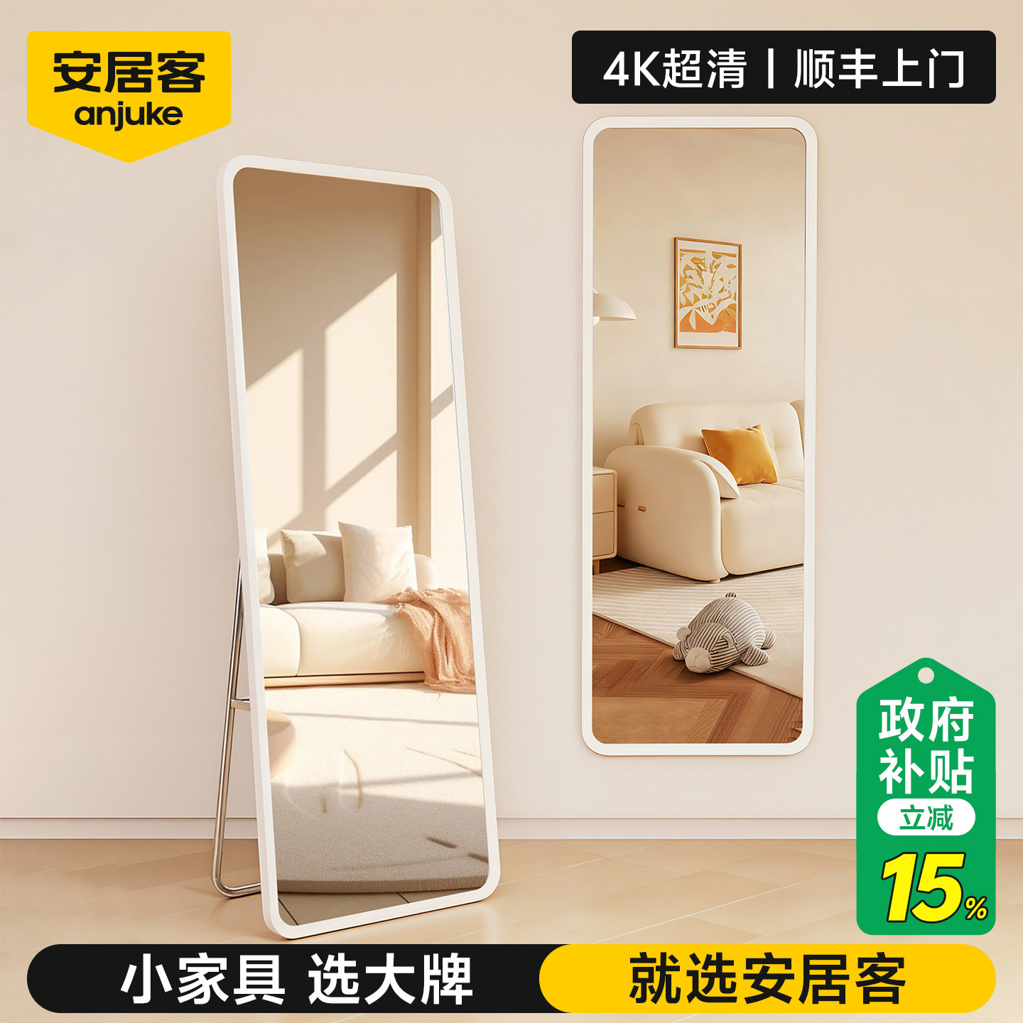 安居客全身镜穿衣镜落地壁挂镜子家用高清超清女生卧室服装店试衣
