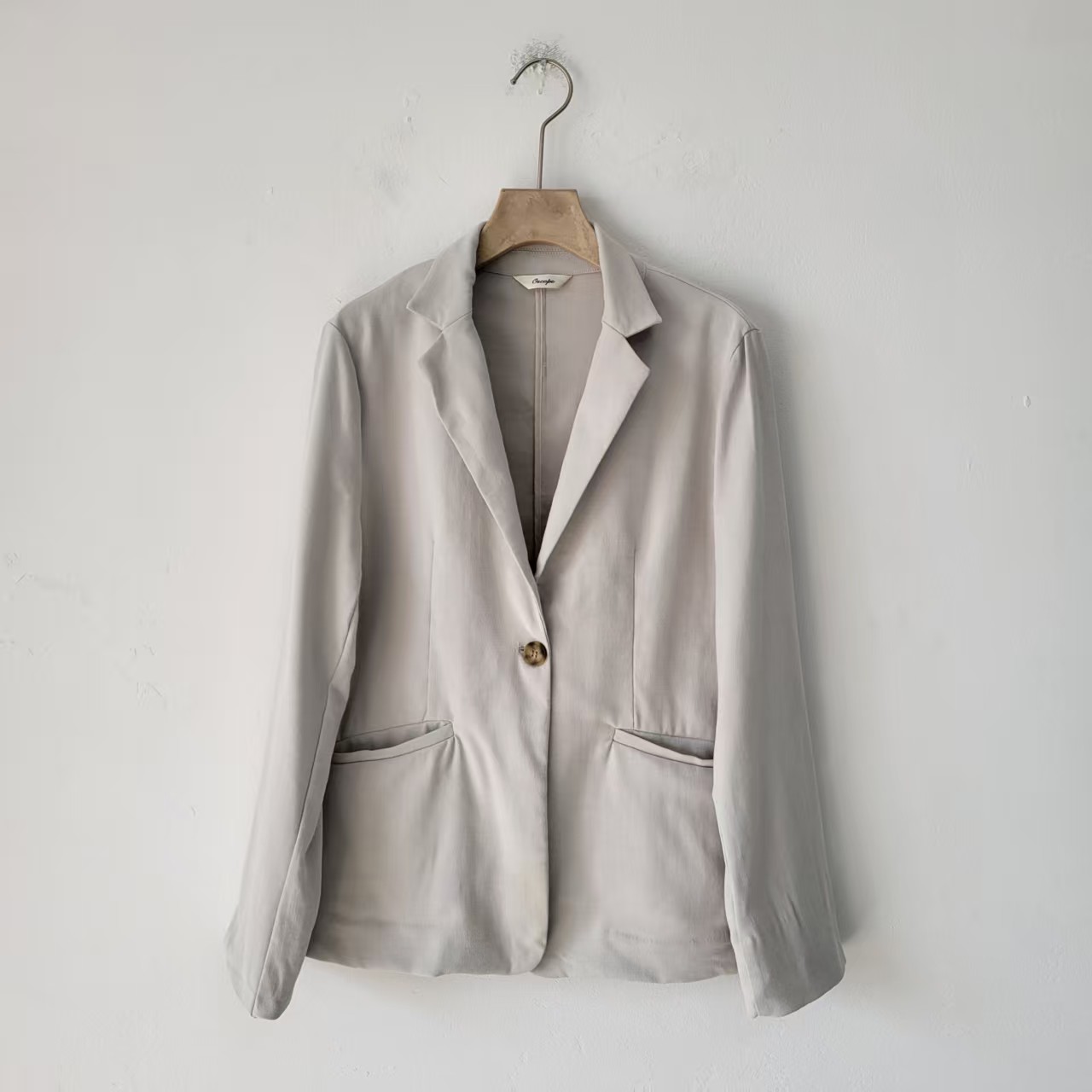 棉麻日单春季新款女装纯色长袖西装外套女宽松休闲百搭上衣女西服