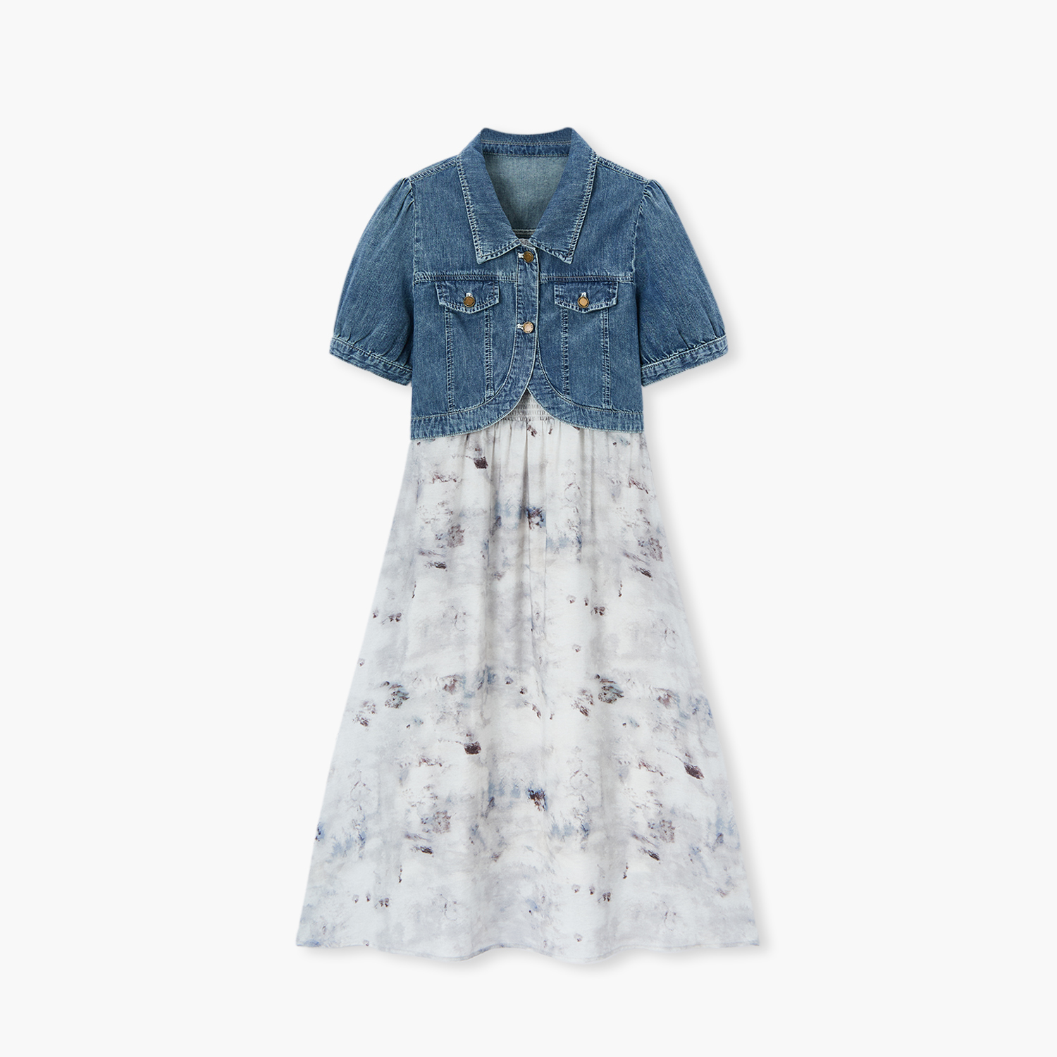 爱居兔两件式连衣裙2025年夏季新款全棉短袖牛仔外套搭吊带长裙