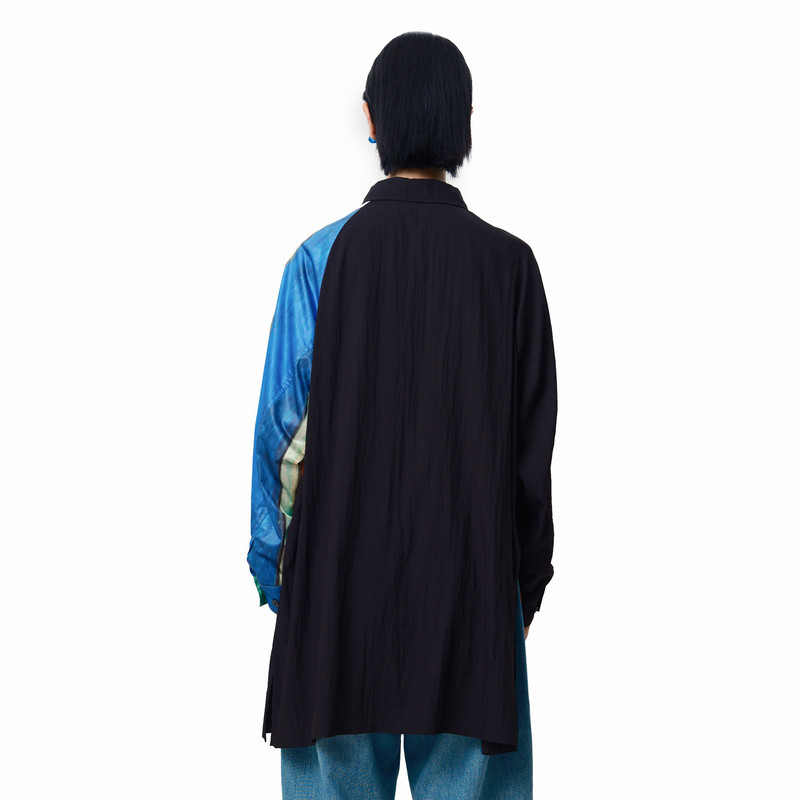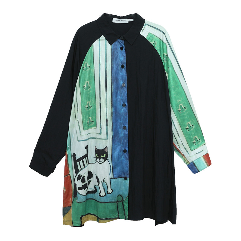 MOVEUP幻走2025春季新款.FUN系列印花高开叉侧骨设计中长款衬衫女