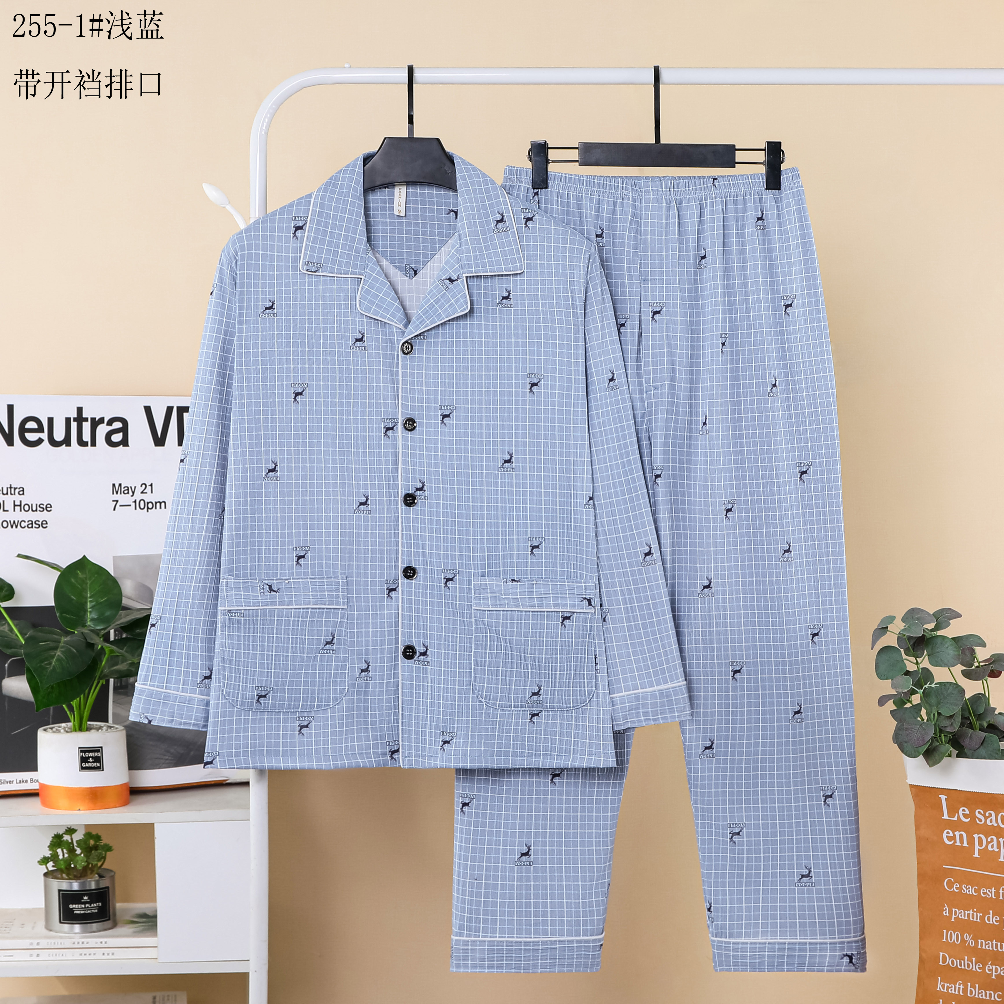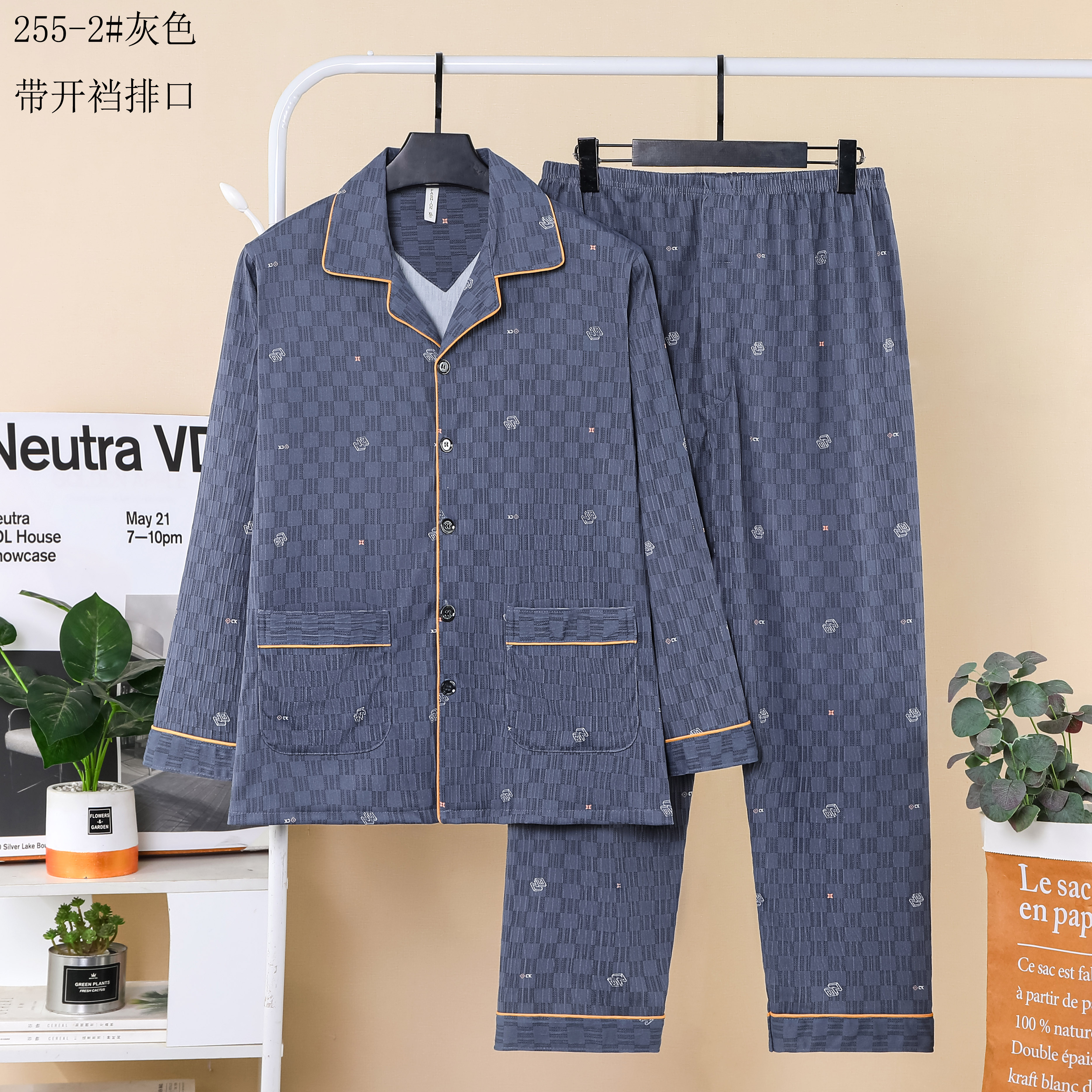 2025年中老年开衫长袖长裤带开档排口宽松舒适休闲春秋季新款睡衣