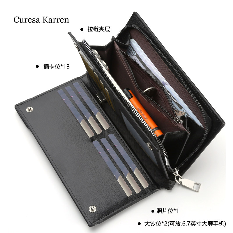 男士拉链钱包长款2025新款青年皮夹大容量卡包真皮质感商务手机包